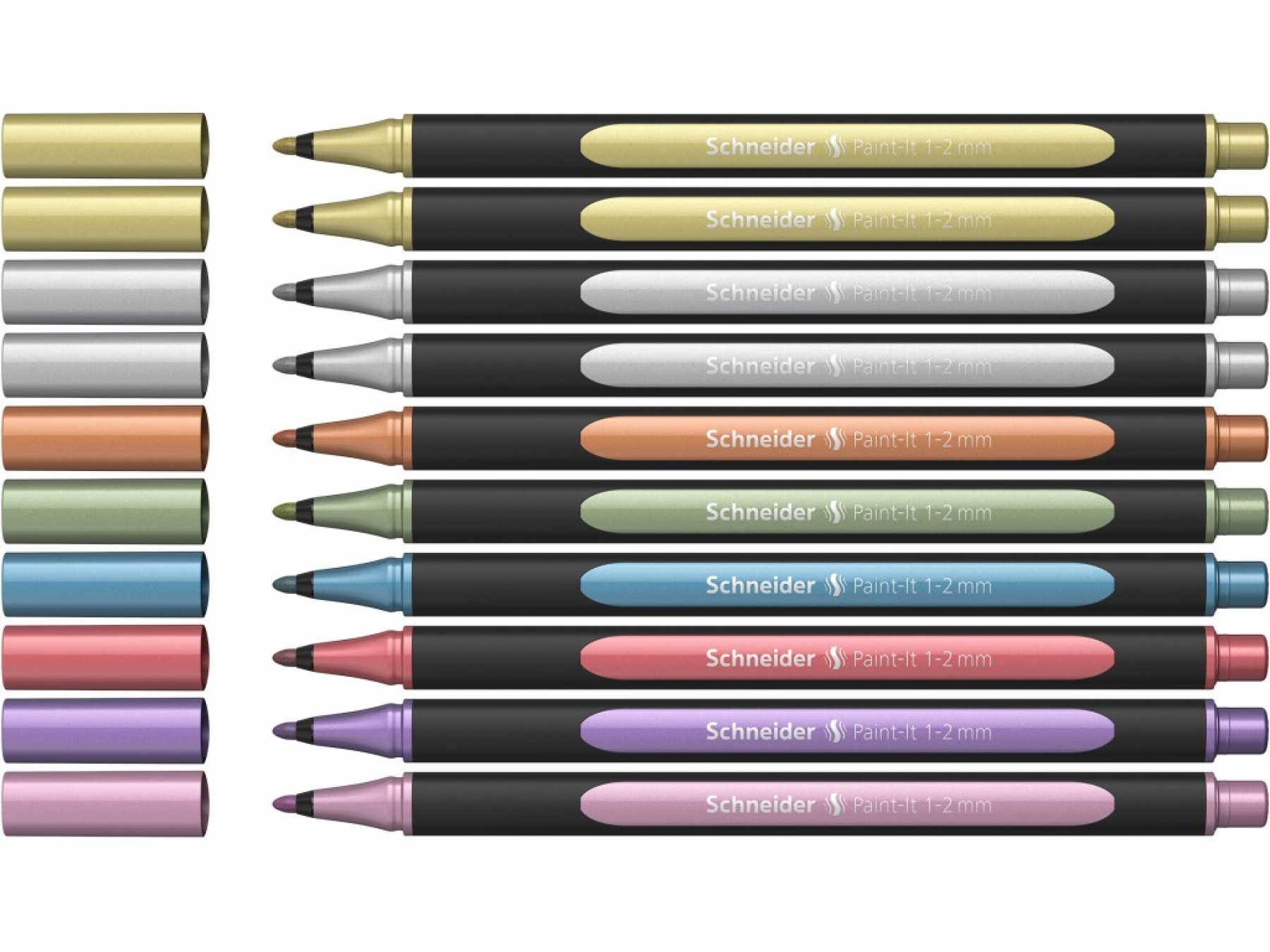 Conține: 10 × Paint-It 020 1-2 mm (2 × silver metallic, 2 × gold metallic, 1 × copper metallic, 1 × vintage red metallic, 1 × rose metallic, 1 × frosted violet metallic, 1 × polar blue metallic, 1 × vintage green metallic)