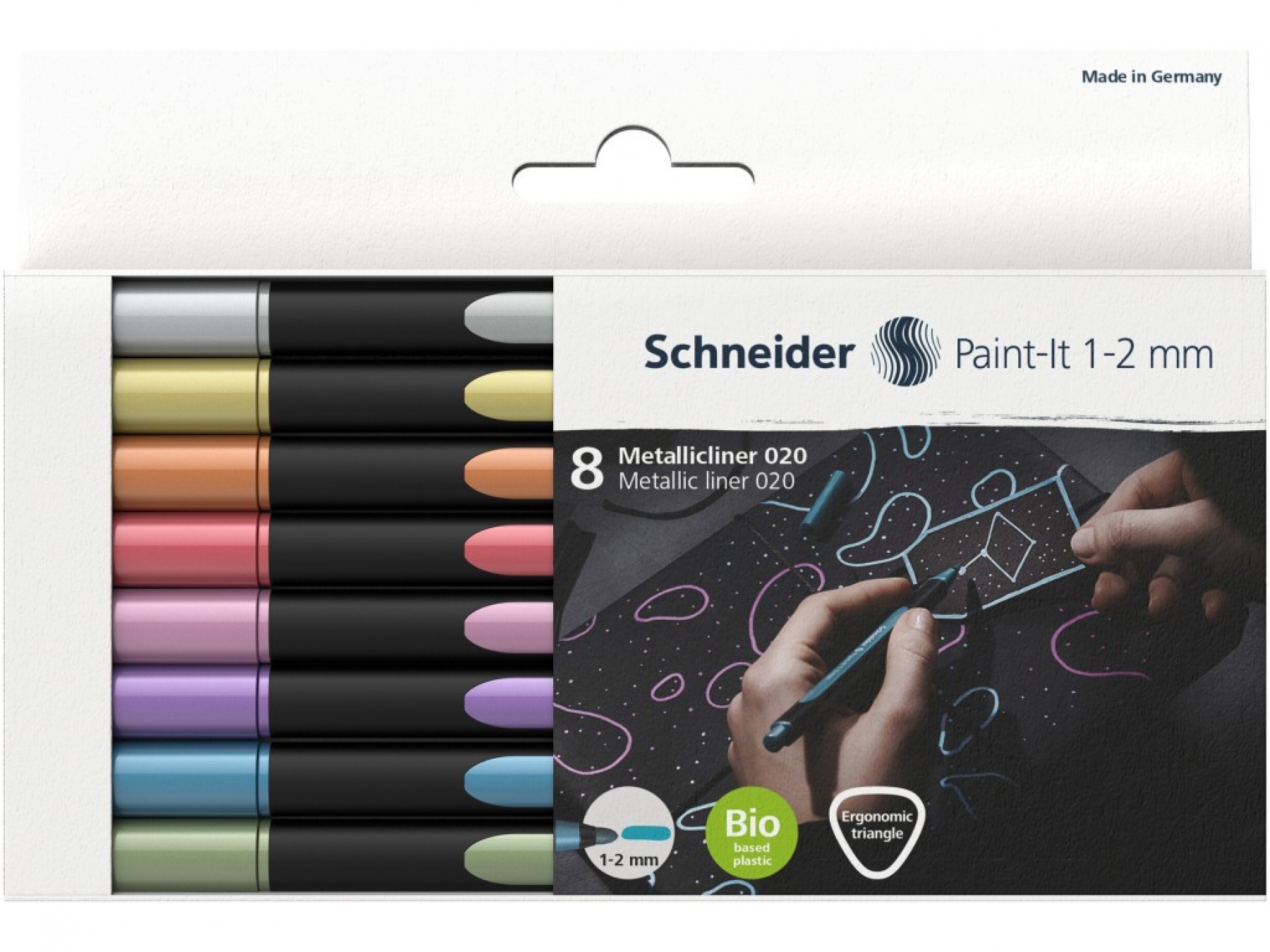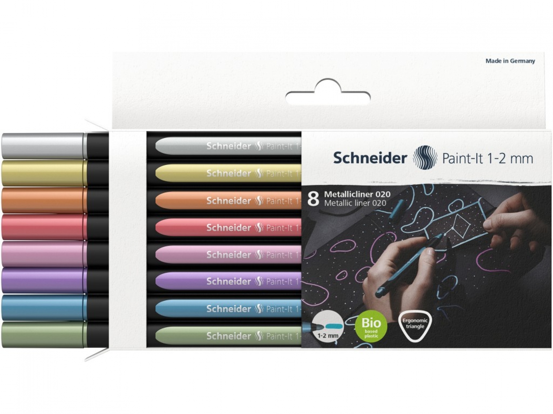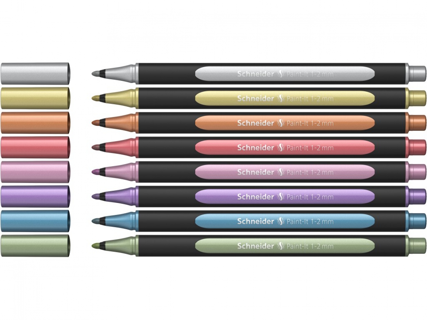 Conține: 8 × Paint-It 020 1-2 mm (silver metallic, gold metallic, copper metallic, vintage red metallic, rose metallic, frosted violet metallic, polar blue metallic, vintage green metallic)