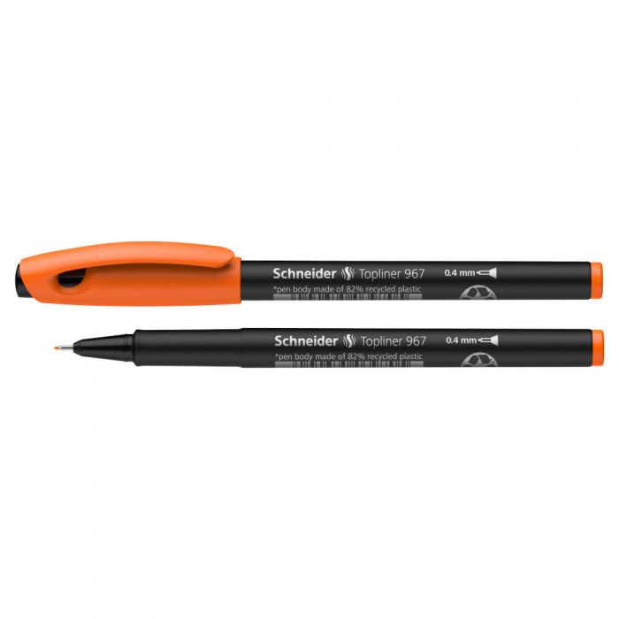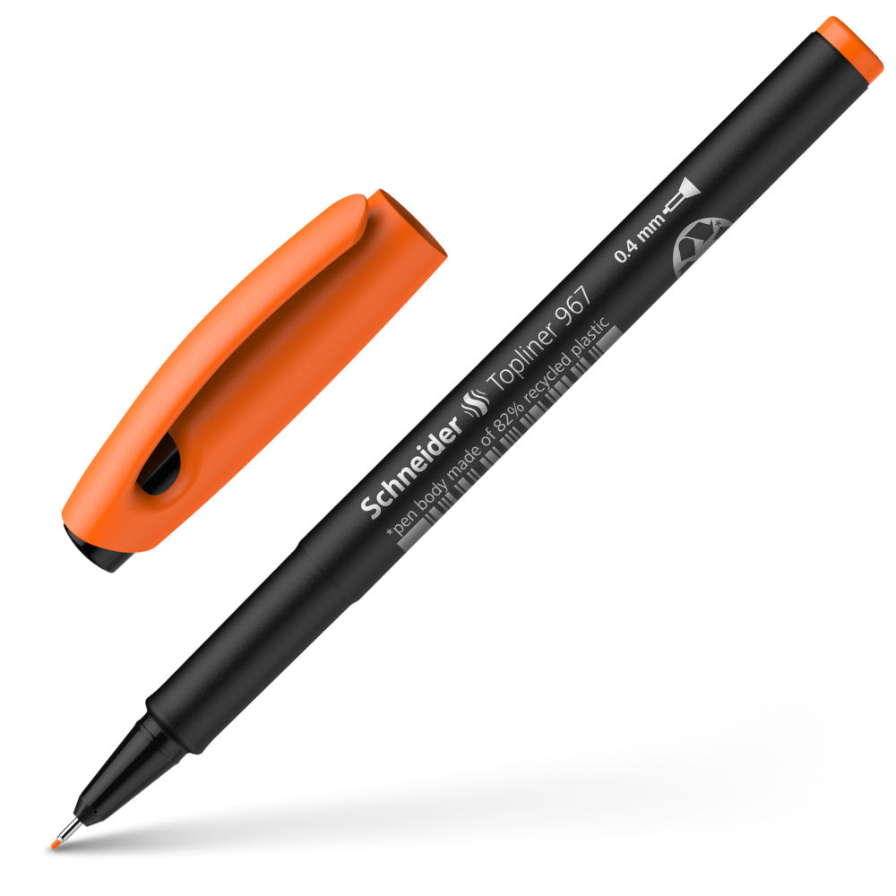 Schneider Topliner 967 este un fineliner cu ​varf tip ac din fibra prins in manson din otel inoxidabil. Grosime de scriere 0,4 mm pentru scriere si desenare fina si precisa.