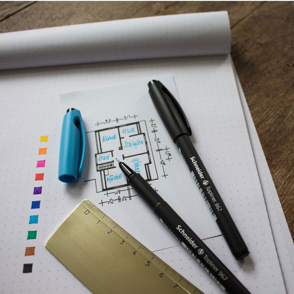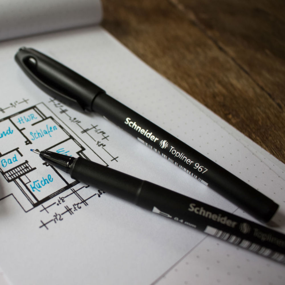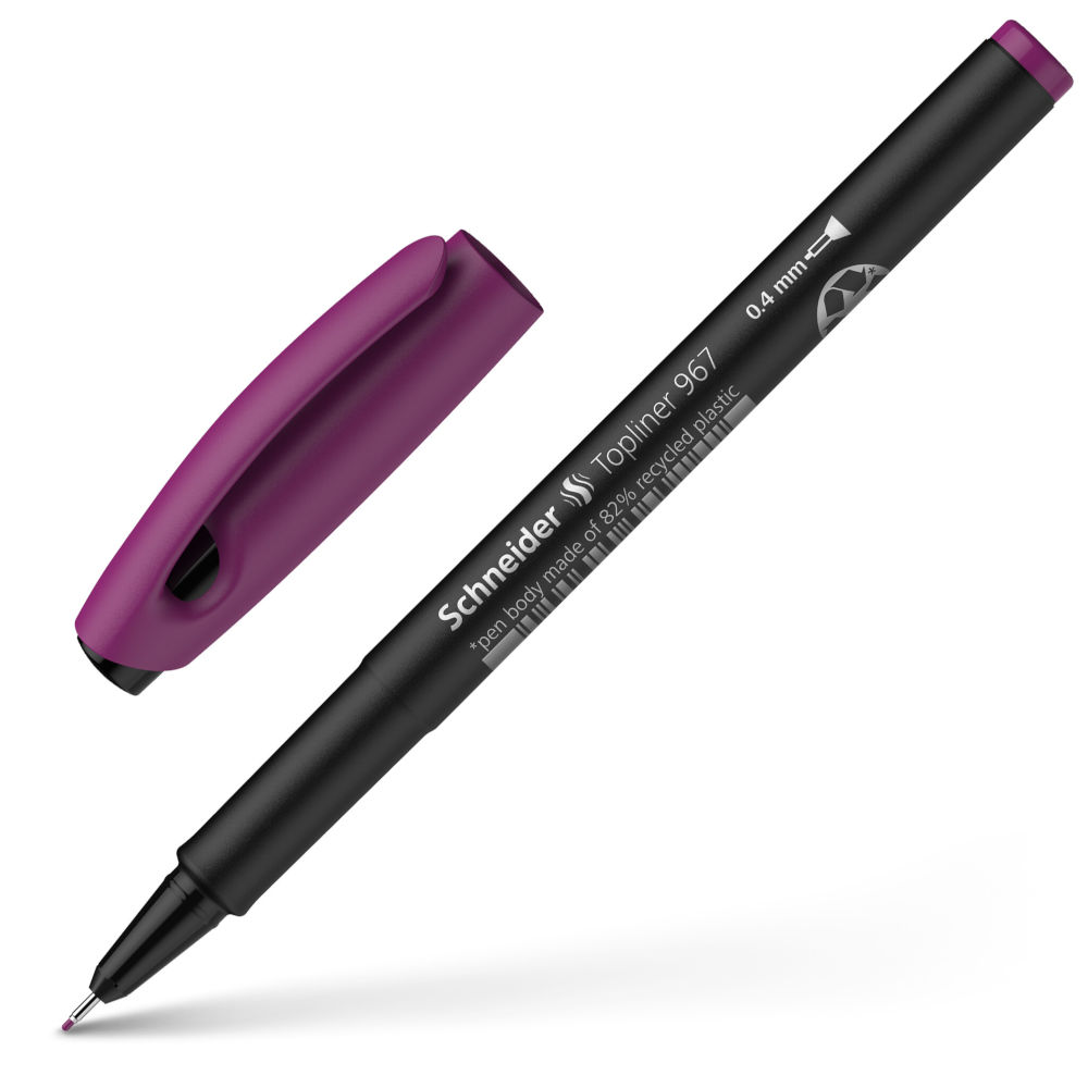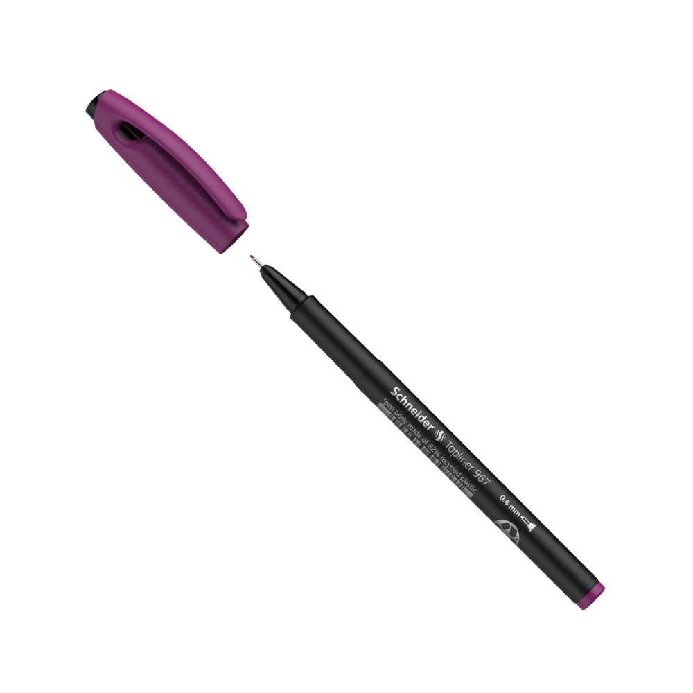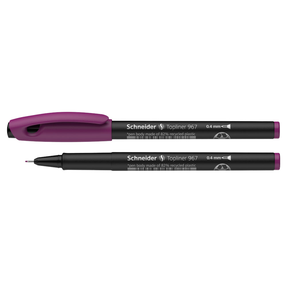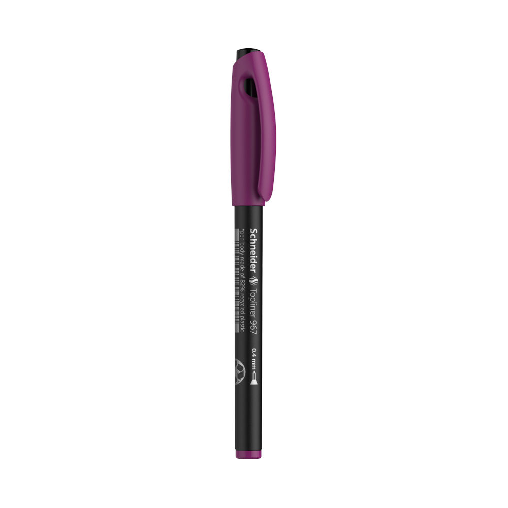 Schneider Topliner 967 este un fineliner cu ​varf tip ac din fibra prins in manson din otel inoxidabil. Grosime de scriere 0,4 mm pentru scriere si desenare fina si precisa.