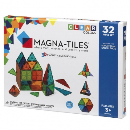 Castigatoare a nenumarate premii pentru excelenta in educatie, seturile magnetice de constructie Magna-Tiles sunt locul unde matematica, stiinta, creativitatea si imaginatia se intalnesc. Aceste piese transparente, avand aspectul unor vitralii viu colorate, au magneti in interiorul lor care ii vor ajuta pe cei mici sa construiasca orice isi imagineaza. Copiii pot crea diverse figuri geometrice plane si in spatiu (patrate, prisme, triungiuri, cuburi, piramide si alte forme geometrice), explorand astfel matematica si relatiile in spatiu. Fiecare piesa are magneti pe margini, insa este un secret capacitatea unica de a se atrage reciproc, chiar si atunci cand sunt rotiti invers. Piesele au dimensiuni potivite pentru copii, pentru a putea fi folosite cu usurinta. Setul Magna-Tiles 32 este perfect pentru constructorii incepatori si include 32 de piese magnetice transparente, viu colorate: 14 patrate mici, 2 patrate mari, 8 triunghiuri echilaterale, 4 triunghiuri drepte, 4 triunghiuri isoscele. Pe pachet sunt redate cateva modele de constructii insa, imediat ce le vor incerca pe acestea, copiii isi pot testa imaginatia, construind o multime de modele uimitoare. Magna-Tiles mentine active timp indelungat interesul si atentia copiilor si constituie un excelent instrument de dezvoltare a abilitatilor spatiale, tactile, motorii fine, de constructie si modelare, matematice si geometrice. Dezvolta gandirea logica si critica, rationamentul matematic, abilitatile de rezolvare a problemelor spatiale, imaginatia si creativitatea. In plus, Magna-Tiles face ca invatarea sa fie distractiva, mareste timpul si capacitatea de concentrare a copiilor, mentinandu-le atentia ocupata cu ceva educational. Toate seturile Magna-Tiles sunt compatibile intre ele. Magna-Tiles sunt folosite in scoli, gradinite, locuri de joaca, in centre pentru copii, in muzee pentru copii si in multe case din toata lumea. Parintii, educatorii si copiii de toate varstele iubesc Magna-Tiles! Seturile magnetice de constructie Magna-Tilessunt sigure pentru copii, nu contin BPA, ftalati, PVC, latex sau materiale toxice, respectand standardele internationale de calitate si siguranta CE, EN71, ASTM si CPSIA. Cateva idei de joaca cu piesele Magna-Tiles: - Sa construiasca in lumina solara pentru a obtine reflexii colorate; - Sa foloseasca o lanterna pentru a obtine o reflexie colorata; - Sa se joace cu piesele Magna-Tiles pe o masa luminata; - Sa construiasca pe o baza magnetica, o tava metalica, o tabla magnetica, pe frigider, etc. Greutatea setului: 1.2 kg Premii Castigate: - Dr Toy s 10 Best Educational Products Award (premiul Dr. Toy pentru cel mai educativ produs); - Early Childhood News Directors Choice Recognition Award (un premiu care recunoaste excelenta in design si in fabricarea produselor pentru copii. Premiul acesta sta la baza alegerilor creselor, gradinitelor si scolilor din SUA, atunci cand cumpara produse sigure, durabile si potrivite pentru institutiile lor.); - Parents Choice Gold Award (medalia de aur, care se da doar produselor de cea mai inalta calitate, fiind studiat inclusiv procesul de fabricatie si factorul uman); - National Parenting Publications Award - medalia de aur pentru una din cele mai bune jucarii disponibila acum pentru copii. NAPPA ofera premii jucariilor care ajuta la dezvoltarea inteligentei copiilor; - Teachers Choice Award - ca produs de excelenta in clasa; - Cea mai buna jucarie pentru copii, din partea Asociatiei Americane a Magazinelor pentru Copii; - Creative Play: Teaching Resources 4 - 7 years; - Castigator Academics Choice la categoria , Jucarie pentru creier, ; - Valtech Magna-Tiles au castigat Sigiliul de Recomandare al Global Educator Institute (GEI), fiind astfel plasate intre cele mai bune produse de invatare disponibile in prezent. - Magna-Tiles au fost selectate de Institutul de Cercetare INSPIRE pentru Inginerie Pre-universitara ca o jucarie ce promoveaza gandirea inginereasca si designul; - Recomandat de Parents Choice; - Brain Child Award - pentru jucaria cu cea mai mare valoare educationala; - Toy Testers - cea mai educativa jucarie - medalia de aur;