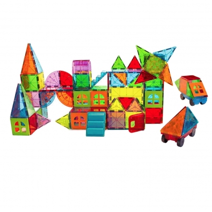 Este timpul sa iti completezi colectia Magna-Tiles cu culori si mai vibrante si luminoase si placi magnetice mobile. Noua aparitie in colectia Magna-Tiles, mult asteptatul set Metropolis vine cu culori noi indraznete si luminoase si placi in miscare cu care copiii pot crea orice structura sau constructie isi imagineaza! De la o metropola inalta aglomerata, pana la o ferma alimentata de o moara de vant sau o colonie infloritoare in spatiu, nu exista limite in imaginatia sau creativitatea copiilor cu acest fantastic set! Setul include 110 piese: 2 patrate mari, 56 de patrate mici, 12 triunghiuri echilaterale, 12 triunghiuri drepte, 10 triunghiuri isoscele, 2 sasiuri cu roti, 1 usa, 1 dreptunghi, 2 scari, 4 sferturi de cerc, 1 spinner, 6 ferestre, 1 arcada. Acest set inedit de placi magnetice, ce permite constructia libera, fara efort, va inspira imaginatia micutilor si ii vor ajuta sa devina creativi Fiecare piesa este translucida si are magneti in interior, care permit conectarea cu celelalte forme in orice pozitie. Este un secret capacitatea unica de a se atrage reciproc, chiar si atunci cand sunt rotiti invers. Magnetii de inalta calitate sunt securizati in siguranta in fiecare forma. Magna-Tiles Metropolis ofera posibilitatea de a explora ideile si lectiile de matematica si geometrie intr-un mod distractiv si interesant. Piesele au dimensiuni potivite pentru copii, pentru a putea fi folosite cu usurinta. Magna-Tiles mentine active timp indelungat interesul si atentia copiilor si constituie un excelent instrument de dezvoltare a abilitatilor spatiale, tactile, motorii fine, de constructie si modelare, matematice si geometrice. Dezvolta gandirea logica si critica, rationamentul matematic, si stiintific, abilitatile de rezolvare a problemelor, rationamentul spatial, abilitatile tactile, motricitatea fina, coordonarea ochi-mana, dexteritatea, imaginatia si creativitatea. In plus, Magna-Tiles face ca invatarea sa fie distractiva, mareste timpul si capacitatea de concentrare a copiilor, mentinandu-le atentia ocupata cu ceva educational. Seturile Magna-Tiles nu numai ca sunt distractive, dar ajuta si la dezvoltarea abilitatilor STEM in timp ce copiii conecteaza, construiesc, numara, potrivesc si creeaza structuri magnetice. Toate seturile Magna-Tiles originale sunt compatibile intre ele. Magna-Tiles sunt folosite in scoli, gradinite, locuri de joaca, in centre pentru copii, in muzee pentru copii si in multe case din toata lumea. Parintii, educatorii si copiii de toate varstele iubesc Magna-Tiles! Seturile magnetice de constructie Magna-Tiles sunt sigure pentru copii, sunt realizate din material plastic ABS (Acrylonitrile butadiene styrene) de inalta calitate, nu contin BPA, ftalati, PVC, latex sau materiale toxice, respectand standardele internationale de calitate si siguranta CE, EN71, ASTM si CPSIA. Varsta recomandata: 3+ ani Dimensiuni cutie: 54 x 28 x 9 cm