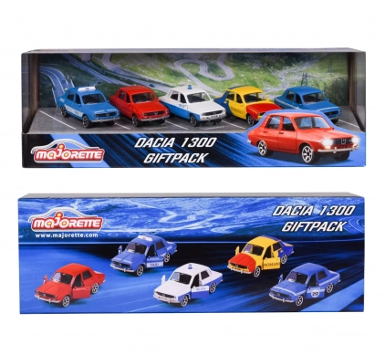 Set 5 masinute din metal Majorette Dacia 1300, cu parti mobile si suspensii, lungime masinuta 7.5 cm.