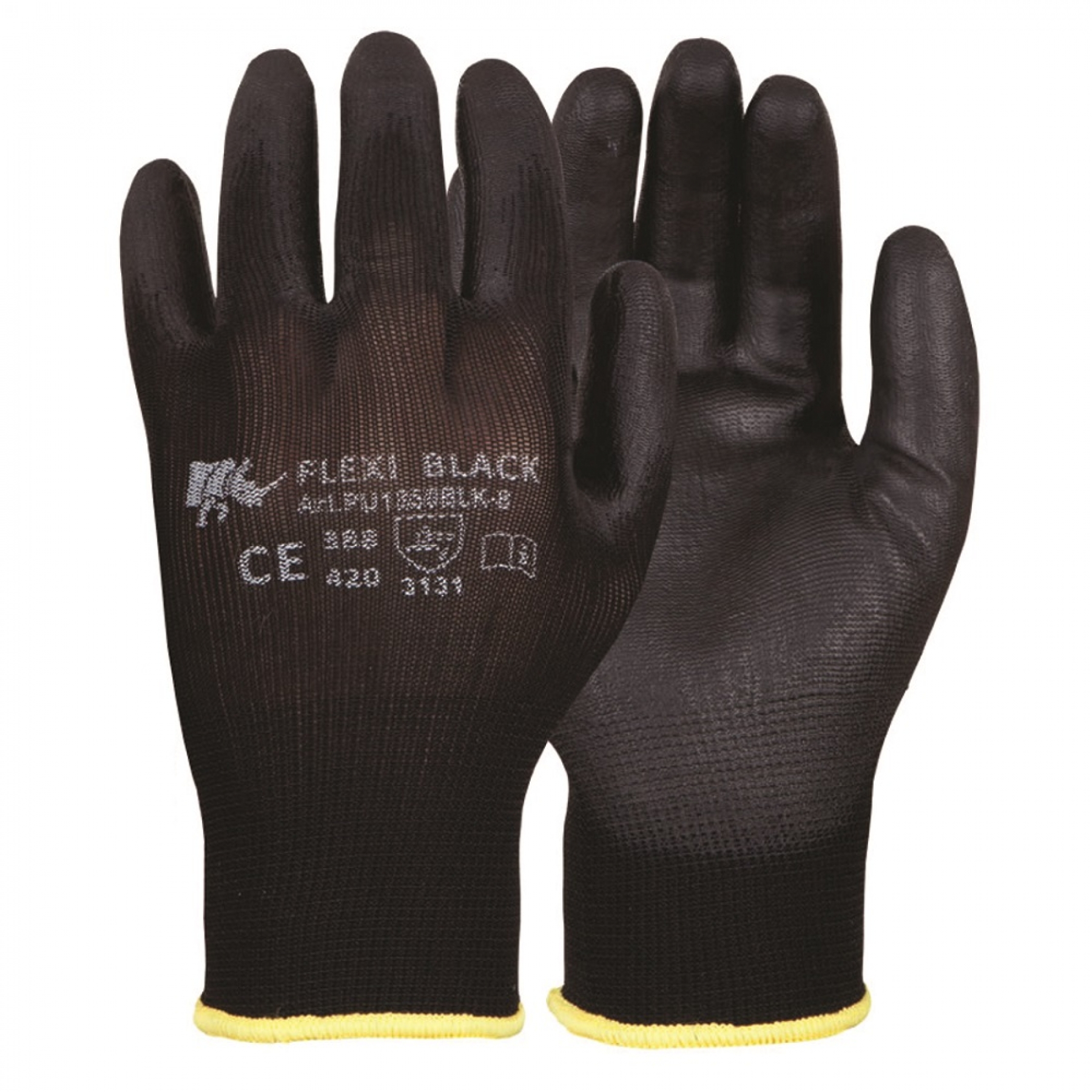 Manusi marimea 10 din poliester cu strat de PU in palma si pe degete FLEXI BLACK
