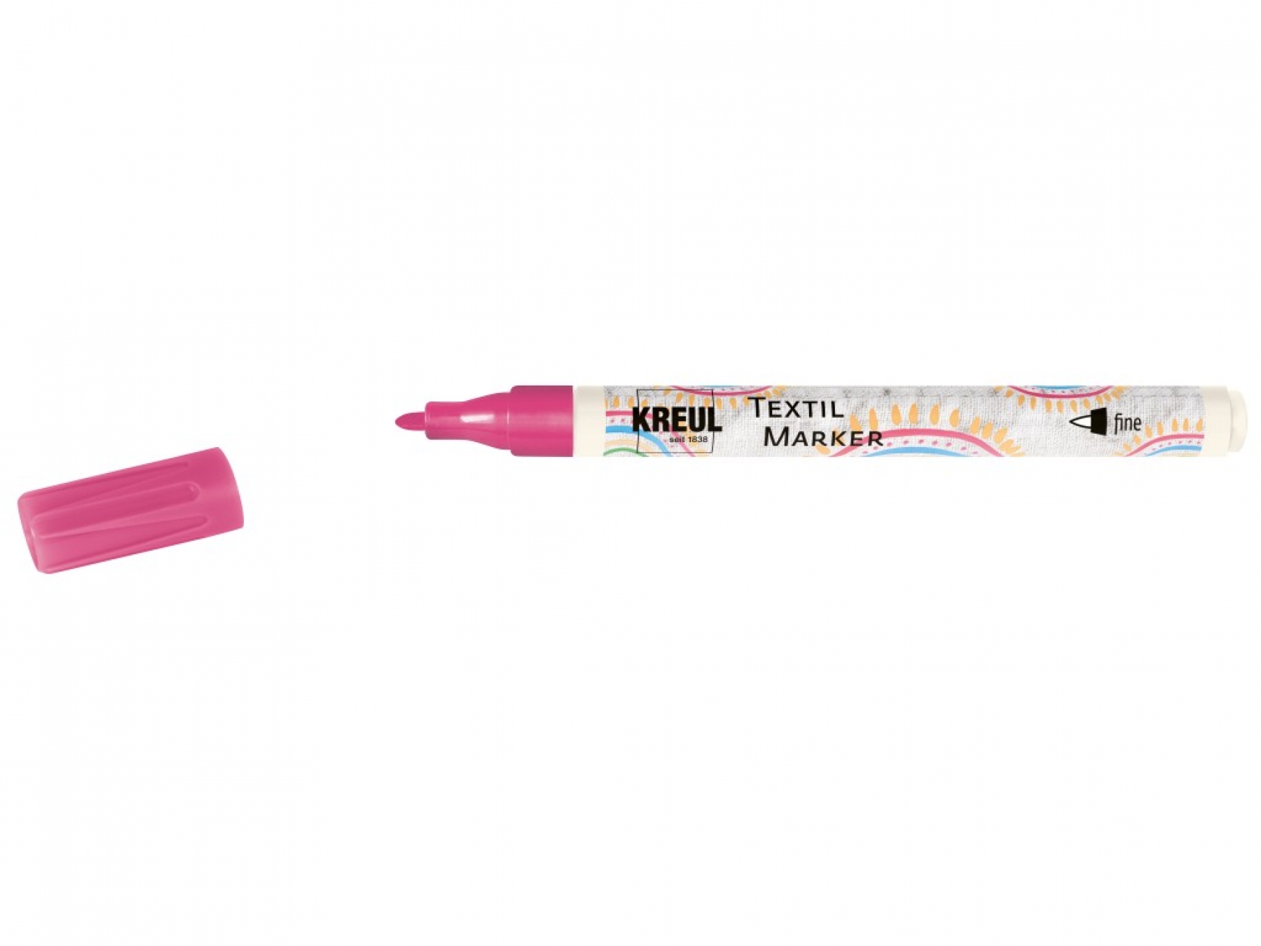Design filigranat, rapid și ușor Atunci când creatorii și micii designeri de modă își proiectează propriile modele în modă, markerul textil fin KREUL nu ar trebui să lipsească. Cu vârful robust, poți începe imediat: nu este necesară agitare sau pompare. Afirmații pozitive, nume, flori sau figuri sunt desenate pe textilele deschise la culoare, fiind scrise foarte delicat sau pictate pe suprafețe mari. Detalii:
