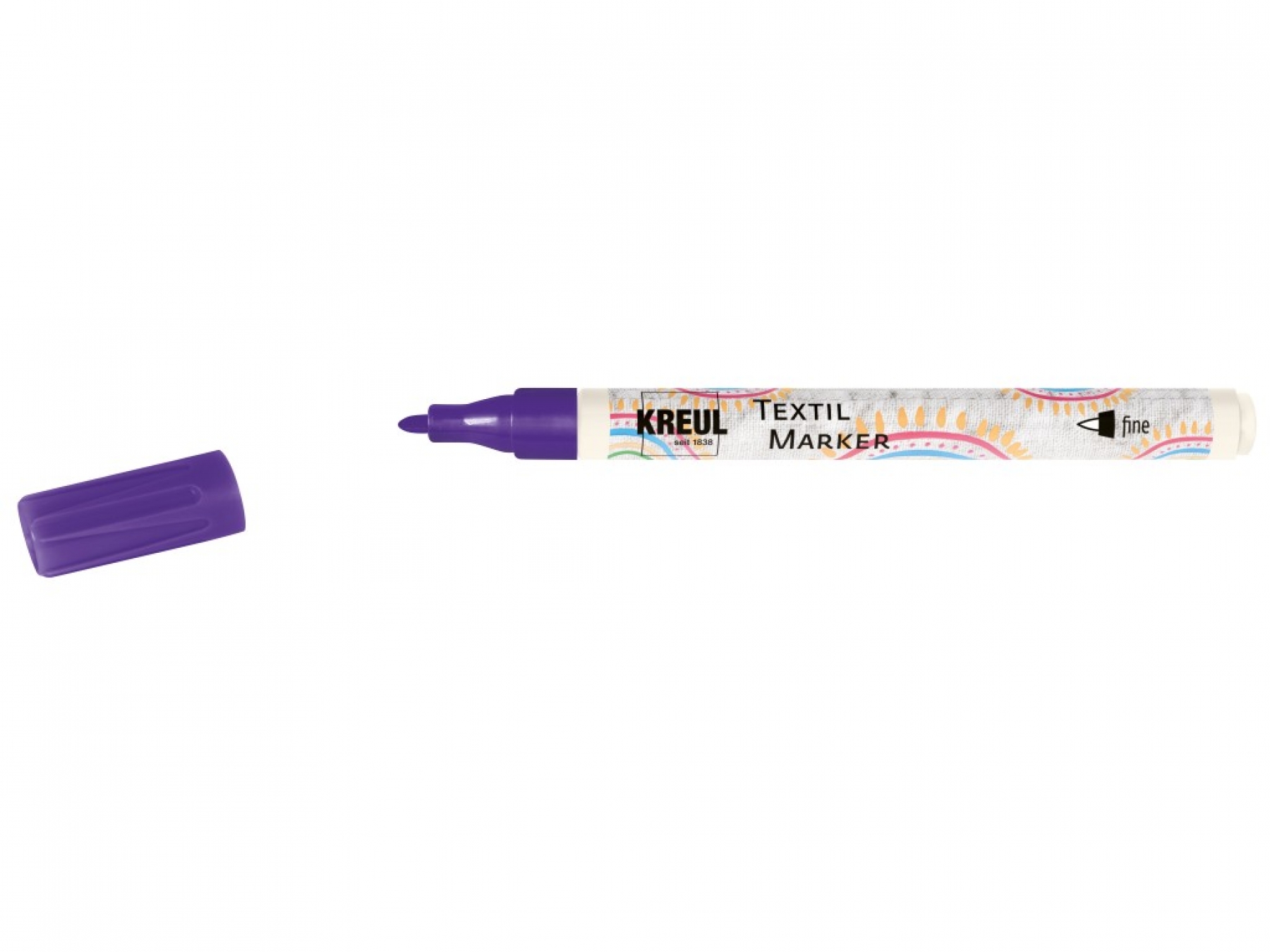 Design filigranat, rapid și ușor Atunci când creatorii și micii designeri de modă își proiectează propriile modele în modă, markerul textil fin KREUL nu ar trebui să lipsească. Cu vârful robust, poți începe imediat: nu este necesară agitare sau pompare. Afirmații pozitive, nume, flori sau figuri sunt desenate pe textilele deschise la culoare, fiind scrise foarte delicat sau pictate pe suprafețe mari. Detalii: