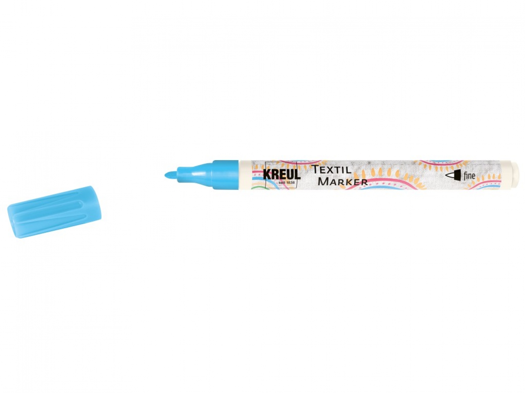 Design filigranat, rapid și ușor Atunci când creatorii și micii designeri de modă își proiectează propriile modele în modă, markerul textil fin KREUL nu ar trebui să lipsească. Cu vârful robust, poți începe imediat: nu este necesară agitare sau pompare. Afirmații pozitive, nume, flori sau figuri sunt desenate pe textilele deschise la culoare, fiind scrise foarte delicat sau pictate pe suprafețe mari. Detalii: