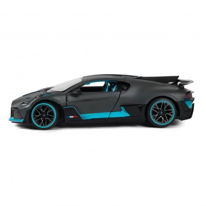 Masinuta are proportiile ideale pentru momente pline de distractie si amuzament, avand dimensiunile in centimetri dupa cum urmeaza 18.8 8.4 5.3. Masinuta metalica Bugatti Divo, scara 1 la 24, are anvelope de cauciuc si un design detaliat interior-exterior realizat din material metalic turnat cu accesorii realizate din material plastic portiere de calitate superioara. Copilul dumneavoastra se poate juca in voie cu masina metalica Bugatti Divo oferita de brandul international Rastar. Nicio cursa nu este imposibil de castigat cu acesta masinuta, care este o replica oficiala cu licenta a modelului original, construita cu mare atentie la detalii. Pasionatii si colectionarii de machete metalice pot de asemenea aprecia aceasta macheta metalica.