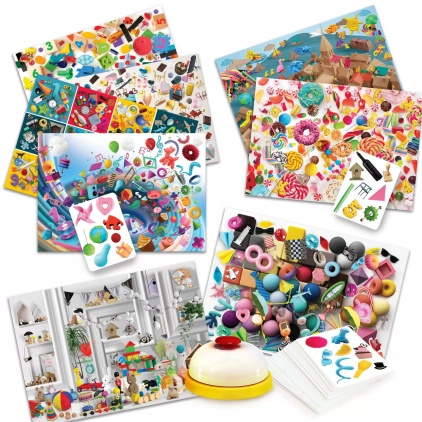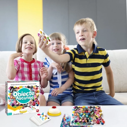 Cel mai distractiv si antrenant joc de obseratie! Alege o plansa de joc, trage o carte si gaseste rapid obiectul ascuns. Fii primul care suna din clopotel si castiga! Jocul contine: - 4 planse de joc, - 30 de cartonase cu obiecte, - 1 clopotel, - 1 manual de instructiuni. Valori dezvoltate: perceptia vizuala, coordonarea mana-ochi, abilitati sociale. Jucatori 2-4. Varsta recomandata: 6 ani+. Nu necesita baterii.