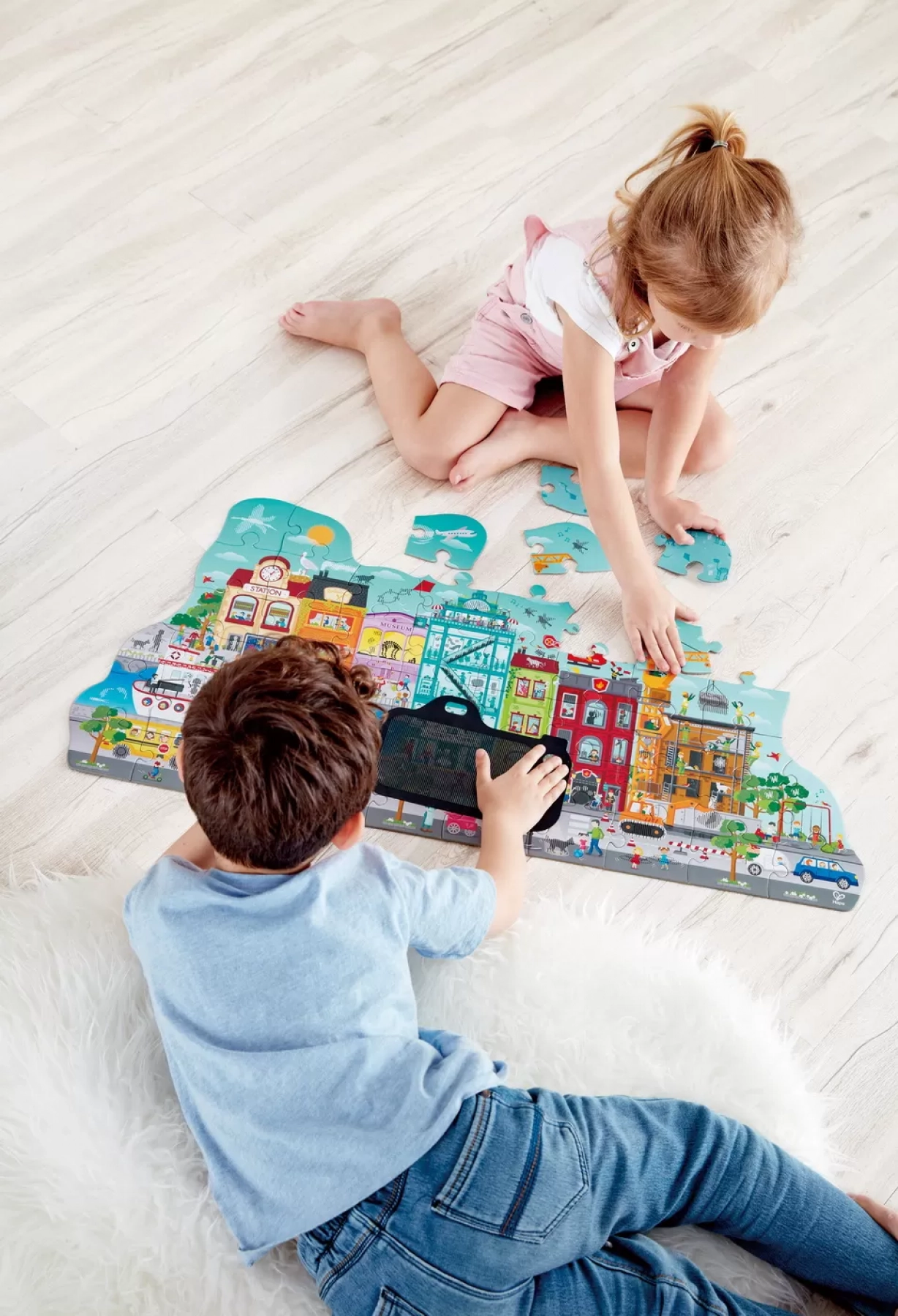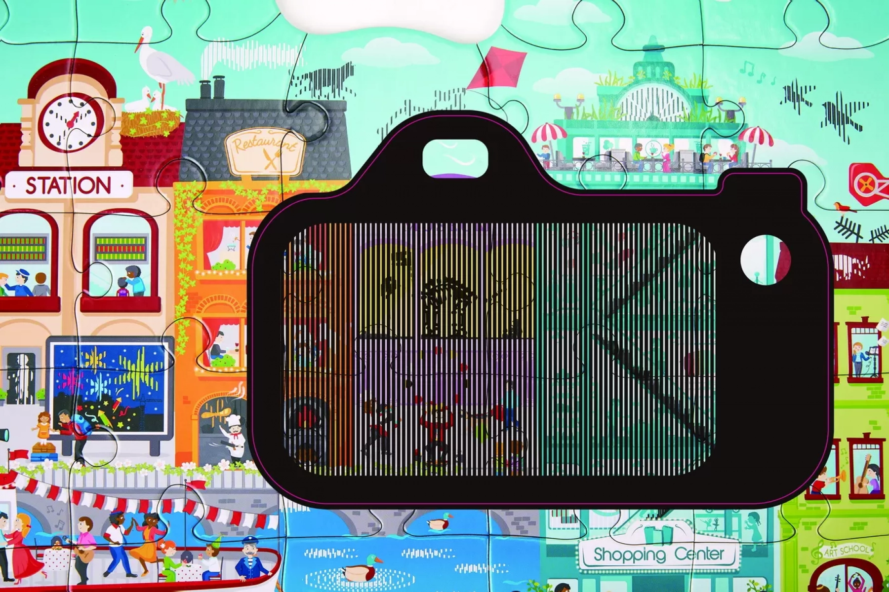 Exploreaza lumea urbana intr-un mod captivant cu acest puzzle inovator si interactiv! Cu cele 49 de piese ale sale, acest puzzle ofera o experienta vizuala fascinanta, iar vizualizatorul special adauga efecte animate distractive pentru a incanta ochii celor mici. Caracteristici principale: Experienta Optica Captivanta: Completarea puzzle-ului ofera ochilor mici o experienta minunata a lumii optice, captandu-le atentia si stimulandu-le imaginatia. Material Durabil: Puzzle-ul este realizat din carton de inalta calitate, asigurandu-i rezistenta si durabilitatea pe termen lung. Materiale Ecologice: Jucaria este realizata din lemn, folosind materiale ecologice si vopsele nontoxice, care respecta cele mai stricte standarde internationale de siguranta si calitate, precum EN71, ISO9001, ASTM F963 si altele. Stimularea Abilitatilor: Proiectat de Hape, un brand cu o traditie indelungata in crearea jucariilor de inalta calitate, fiecare produs este atent conceput pentru a stimula abilitatile senzoriale, fizice si emotionale ale copiilor. Beneficii: Dezvoltarea Imaginatiei: Puzzle-ul si efectele animate incurajeaza imaginatia si creativitatea copiilor, oferindu-le o experienta de invatare interactiva si distractiva. Invatare Interactiva: Prin completarea puzzle-ului si explorarea efectelor animate, copiii isi dezvolta abilitatile vizuale si cognitive intr-un mod interactiv si captivant. Siguranta si Calitate: Materialele ecologice si vopselele nontoxice asigura siguranta si sanatatea copiilor, in timp ce calitatea si durabilitatea produsului garanteaza o experienta de joc indelungata si placuta. Cu acest puzzle urban animat, copiii vor experimenta o aventura captivanta si educativa, stimulandu-si imaginatia si abilitatile cognitive intr-un mod interactiv si distractiv. Varsta recomandata: 4 ani+ Dimensiuni: 42 x 24 x 5 cm