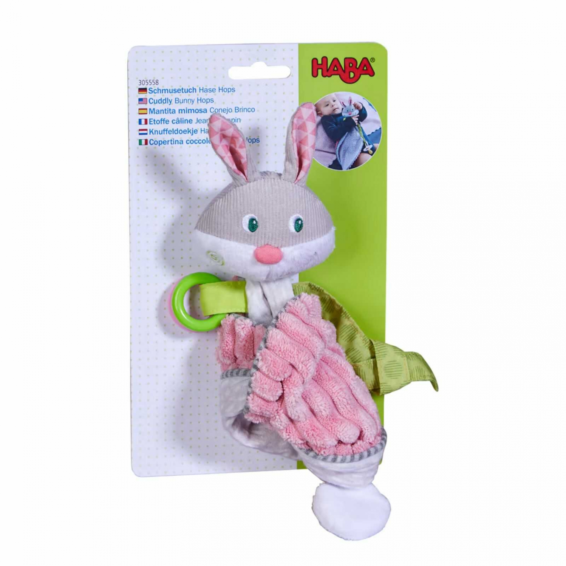 Jucarii bebelusi 3 luni de la Haba - Paturica moale, forma de iepuras, Hops Din vizuina iepurelui in camera copilului, iepurele Hops este un partener de joaca si o paturica de imbratisare in acelasi timp. Paturica de imbratisare a iepurasului Hops este echipata cu elemente interesante care va invita sa simtiti, sa ascultati si sa descoperiti. Odata rulata, paturica de imbratisare se transforma rapid intr-o figurina draguta de joaca care le face o mare placere celor mici. Urechea lunga si draguta este, de asemenea, ideala ca ajutor pentru somn si ca mangaietor Chiar si papusa preferata poate fi atasata la carpa si este la indemana atunci cand este nevoie de ea. Rabbit Hops de la HABA este, prin urmare, o idee de cadou excelenta si este recomandat pentru toti bebelusii. Caracteristici: Model: Iepuras Greutatea produsului: 0,05 kg Adancime: 8 cm Latime: 16 cm Lungime: 50 cm Varsta recomandata: 1 luna+ Material: poliester, bumbac, copolimer acrilonitril-butadiena-stiren Iti mai recomandam si : Carioci lavabile bebelusi Planse de Colorat Reutilizabile Jucarii motrice si exterior Carti Educative Copii - Carti cu activitati Markere Textile si Vopsea Body Face Painting Jucarii interactive bebelusi Detergenti si curatenie casa Avertismente! Jucaria produsul poate contine piese mici care se pot inghiti sau inhala existand pericolul de sufocare sau nu este potrivita copiilor mai mici de 1 luna. Nu lasati ambalajele jucariilor produselor la indemana copiilor. Indepartati orice ambalaj al jucariei produsului inainte de a da jucaria produsul copilului. Va rugam sa supravegheati copilul in timp ce se joaca foloseste acest produs. Pastrati instructiunile si etichetele pentru referinte viitoare. Pastrati jucaria produsul departe de foc, feriti jucaria produsul de temperaturi ridicate si umiditate. rodusul este nou si comercializat in ambalajul original al producatorului. Imaginile au caracter informativ. Nuanta, tonul si intensitatea culorii pot varia in functie de monitor.