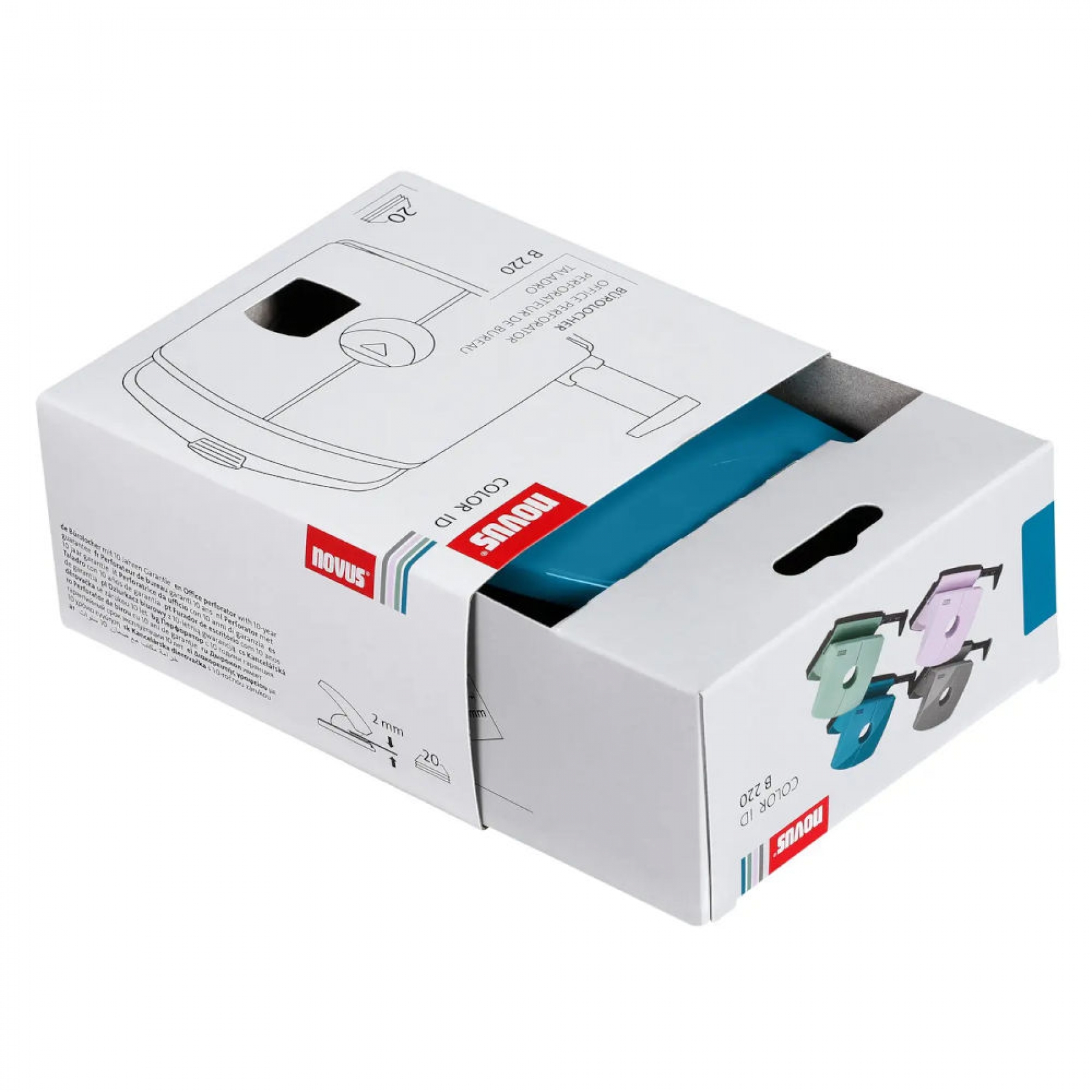 Perforator 20 coli Novus B220 Color ID albastru petrol