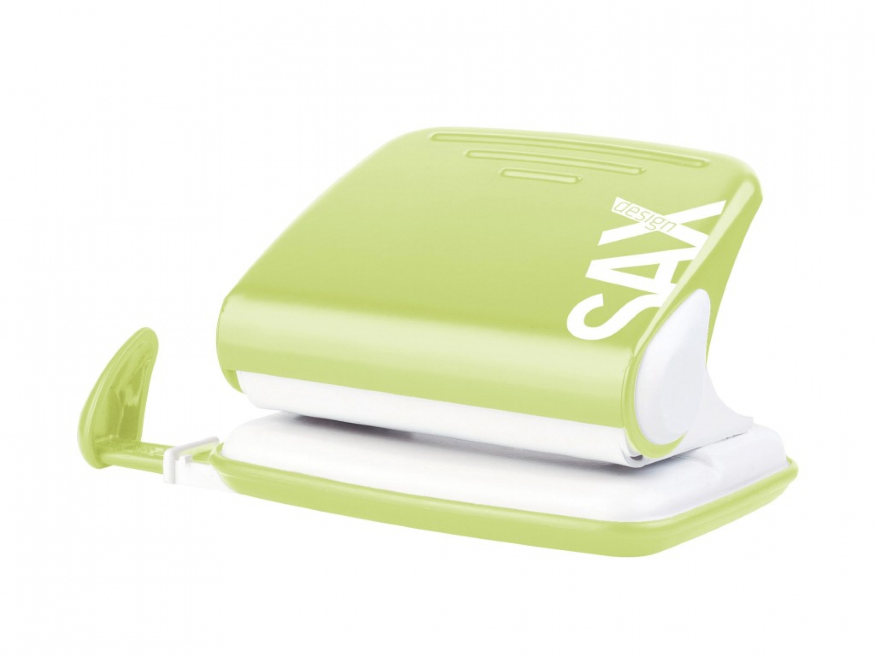 Perforator confectionat din metal usor, cu maner din plastic solid si rigla de ghidaj reglabila din plastic.