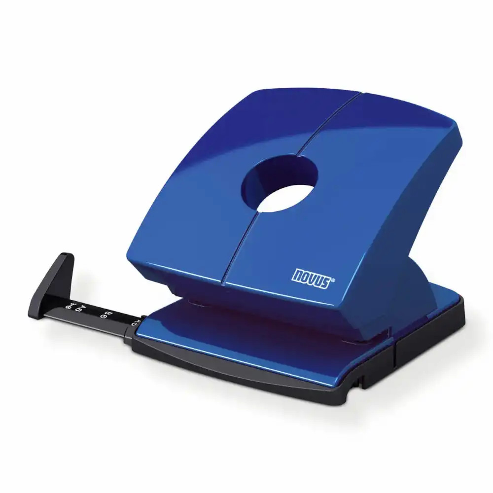 Perforator de birou de inaltă calitate pentru uz profesional. Este realizat din metal, avand prevazuta pe clapa o carcasa din plastic de calitate inalta, cu finisaj lacuit. Este prevazut cu rigla de ghidaj reglabila, din plastic. Baza antiderapanta poate fi deschisa la jumatate pentru golirea deseurilor.
