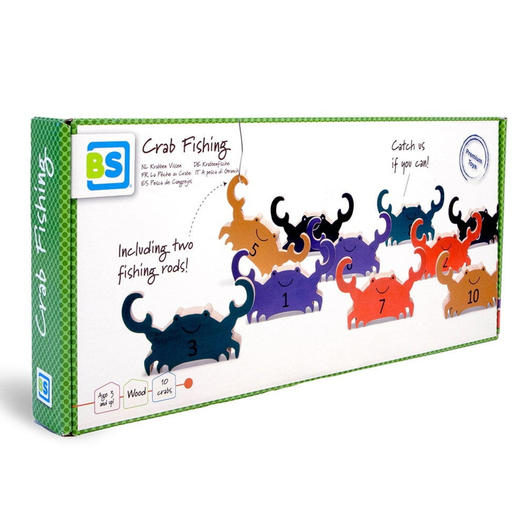 Pescuitul de crabi de la BS Toys este un joc amuzant care testeaza indemanarea, dexteritatea si coordonarea ochi-mana a jucatorilor. Jocul contine: 10 crabi din placaj de lemn, colorati si numerotati, 2 undite alcatuite dintr-un bat de lemn si o tija metalica. Variante de joc: 1. Lant de crabi: Aseaza toti crabii pe podea. Dupa ce se numara pana la trei, ambii jucatori incep sa pescuiasca. Daca prinzi un crab, lasa-l agatat de undita si incerca sa agati cu el urmatorul crab. Jocul se termina cand toti crabii au fost prinsi. Jucatorul cu cel mai lung lant de crabi castiga jocul. 2. Concurs de pescuit: Aseaza toti crabii pe podea. Dupa ce se numara pana la trei, ambii jucatori incep sa pescuiasca. Daca prinzi un crab, scoate-l cu mainile de pe undita, pune-l langa tine si incearca sa pescuiesti un alt crab. Jocul se termina cand toti crabii sunt prinsi. Jucatorul cu cei mai multi crabii castiga. Pentru copiii mai mari: se va numara punctele, nu crabii. 3. Pescuit impreuna: Aseaza toti crabii pe podea. Incercati sa mutati toti crabii, pe rand, dintr-un loc in altul. Ii puteti muta numai atunci cand ambii jucatori lucreaza impreuna si ii apuca cu unditele din ambele parti. Jocul se termina cand toti crabii sunt prinsi si mutati in noul lor loc. Masurati timpul, puteti sa o faceti mai repede si sa va bateti propriul timp? Ca regula generala pentru toate variantele de joc, nu ai voie sa atingi crabii sau partea metalica a unditei. Cu toate acestea, daca un crab cade pe spate sau pe fata, il poti pune in picioare inainte de a incerca sa-l prinzi din nou. Dimensiune crab: 15 x 9 x 2 cm Dimensiune cutie: 40 x 18 x 4 cm Varsta recomandata: 3 ani+ Atentie!Contraindicat copiilor mai mici de 3 ani. Jucaria poate contine piese mici care se pot inghiti sau inhala existand pericolul de sufocare sau nu este potrivita copiilor mai mici de 3 ani.