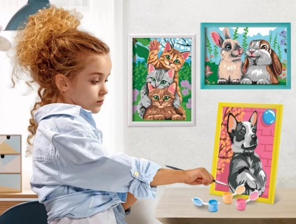 Cu kiturile Paint Frame, bazate pe tehnica colorarii dupa numere, copiii invata sa coloreze diferitele imagini cu atentie si grija, imbunatatindu-si astfel talentul artistic si dezvoltandu-si abilitatile motorii. La final, ei vor simti un sentiment de bucurie, mandrie si satisfactie care ii va stimula sa doreasca sa continue sa picteze. Satisfactie si bucurie! Transformati-va in artisti si fiti mandri de capodopera voastra. Paint Frame ii transforma pe toti in adevarati artisti! Tablourile colorate cu rame incluse sunt perfecte pentru camerele copiilor.