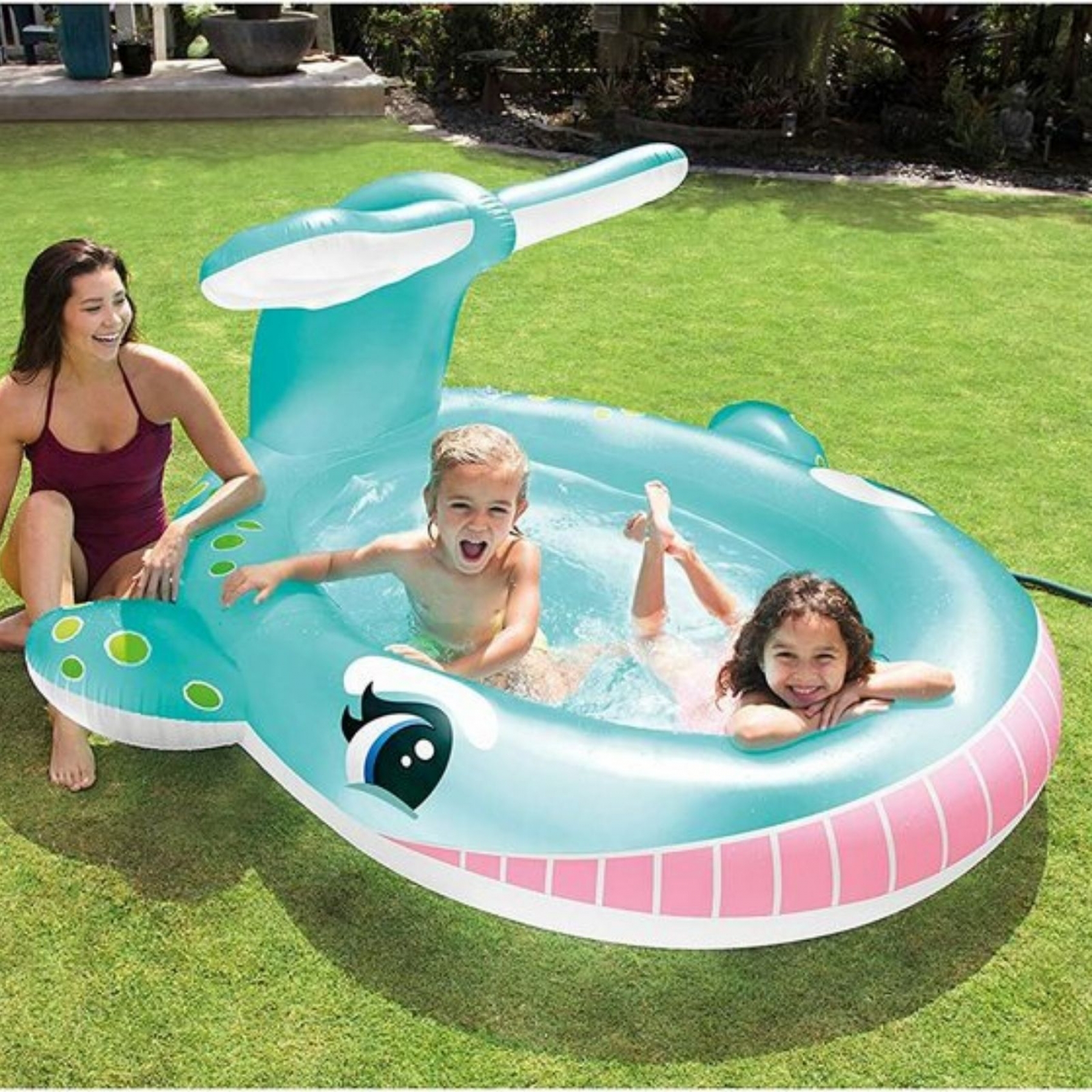 Piscina gonflabila pentru copii cu dus Balena. Inviorarea in gradina nu a fost niciodata mai usoara. Doar umflati, inmuiati si distractia de vara poate incepe. Bucurati-va de vara cu stil Caracteristici: Puteti plia piscina la fel de rapid. Doar turnati apa, scurgeti aerul, lasati piscina sa se usuce la soare. Prin stocarea corecta a piscinei in timpul iernii, veti putea utiliza piscina pentru mai multe sezoane. Capacitatea apei este pana la inaltimea peretelui piscinei (18 cm) 200 l. Fabricat din vinil de inalta calitate cu o grosime de 0,28 mm. Kit reparare inclus. Avertisment: asigurati-va ca piscina este folosita sub supravegherea permanenta a unui adult. Nu lasati niciodata copilul nesupravegheat. Varsta recomandata: 2 ani+ Dimensiune: aprox. 201 Ãmdash; 196 Ãmdash; 91 cm. Avertismente! Nu lasati ambalajele jucariilor produselor la indemana copiilor. Indepartati orice ambalaj al jucariei produsului inainte de a da jucaria produsul copilului. Va rugam sa supravegheati copilul in timp ce se joaca foloseste acest produs. Pastrati instructiunile si etichetele pentru referinte viitoare. Pastrati jucaria produsul departe de foc, feriti jucaria produsul de temperaturi ridicate si umiditate. Produsul este nou si comercializat in ambalajul original al producatorului. Imaginile au caracter informativ. Nuanta, tonul si intensitatea culorii pot varia in functie de monitor.