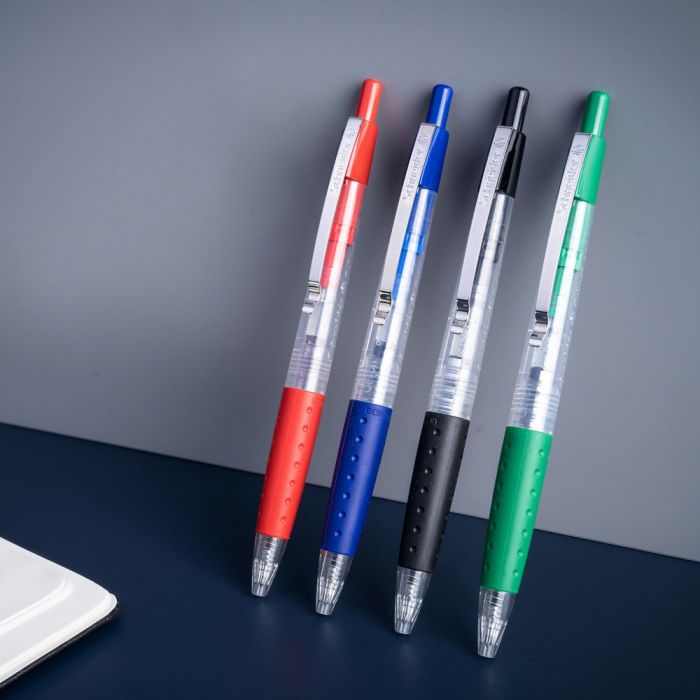 Pix cu gel cu corp din plastic transparent si grip antialunecare ergonomic din cauciuc moale, care ofera o prindere sigura pentru o scriere relaxata.