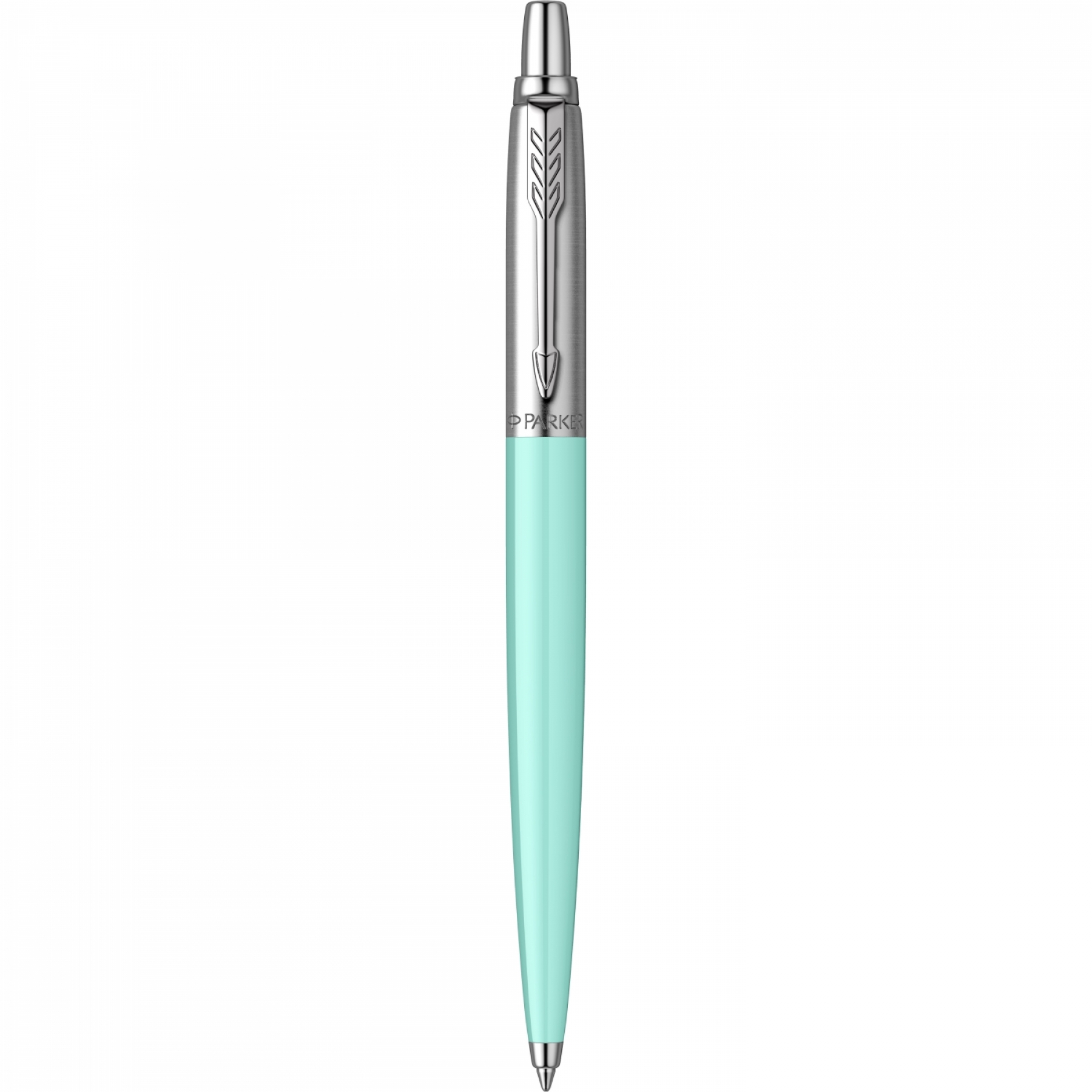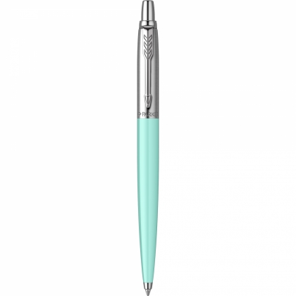 Accesorii: Accesorii placate cu crom Corp: Corp inferior din ABS (acrylonitrile butadiene styrene) de culoare turcoaz. Capac: Corp superior din otel inoxidabil sablat, placat cu crom. Mecanism: Mecanism click (prin apasare) Mina: Mina pix Parker (vezi consumabile)