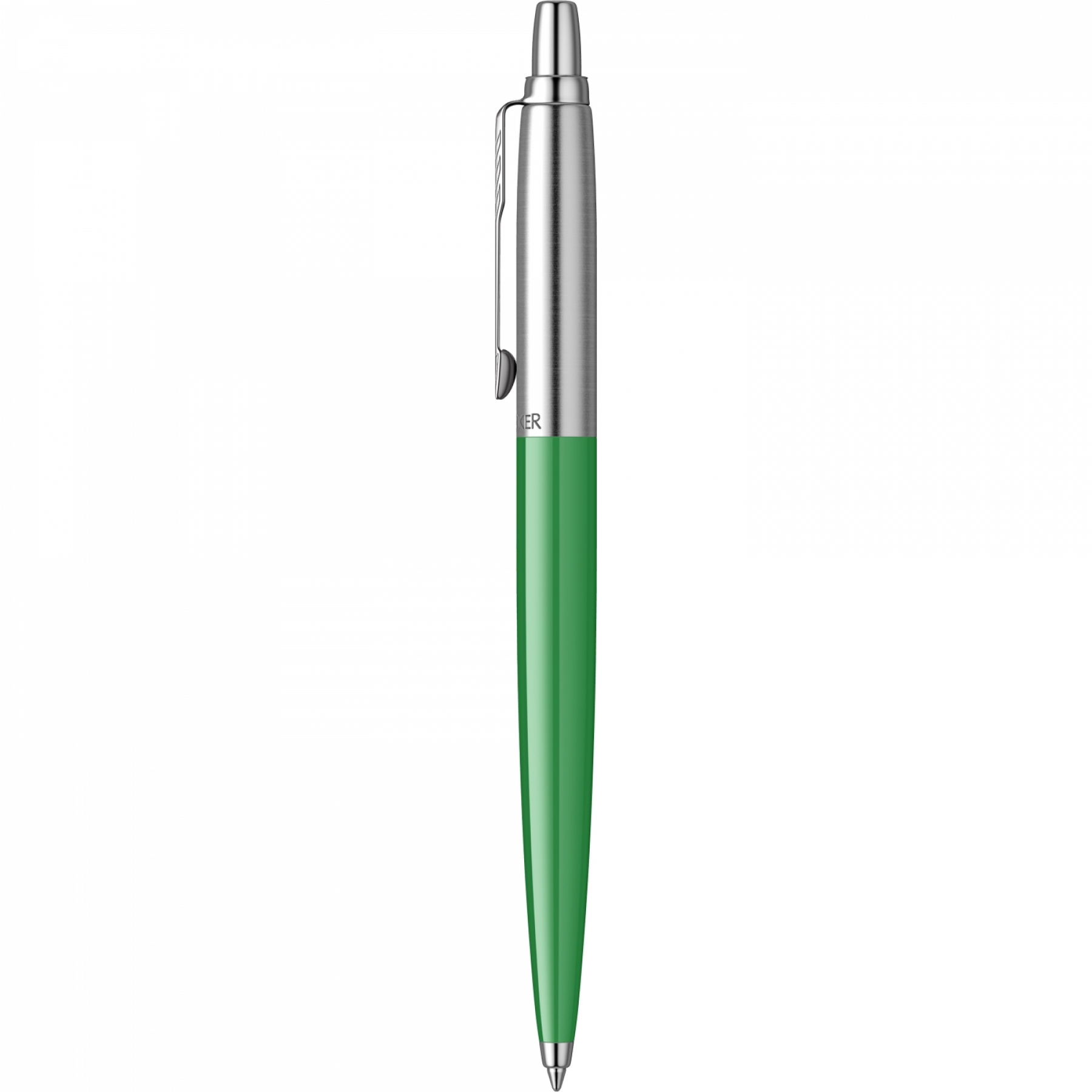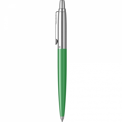Accesorii: Accesorii din otel inoxidabil placate cu crom. Clip din otel inoxidabil placat cu crom Corp: Corp superior din otel inoxidabil sablat, placat cu crom Corp: Corp inferior din ABS (acrylonitrile butadiene styrene) de culoare verde electric Mecanism: Mecanism click (prin apasare) Mina: Mina pix Parker (vezi consumabile)