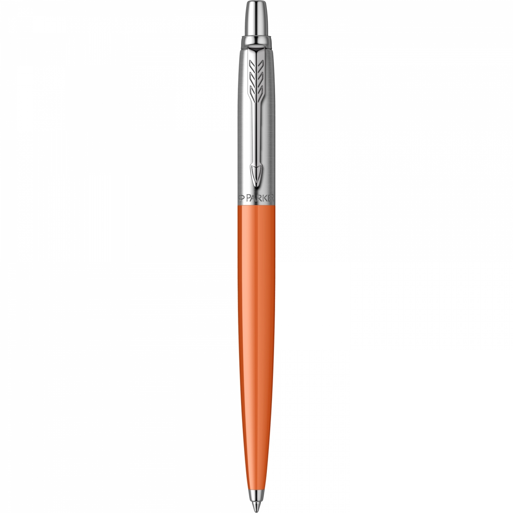 Accesorii: Accesorii din otel inoxidabil placate cu crom. Clip din otel inoxidabil placat cu crom Corp: Corp superior din otel inoxidabil sablat, placat cu crom Corp: Corp inferior din ABS (acrylonitrile butadiene styrene) de culoare portocaliu electric Mecanism: Mecanism click (prin apasare) Mina: Mina pix Parker (vezi consumabile)