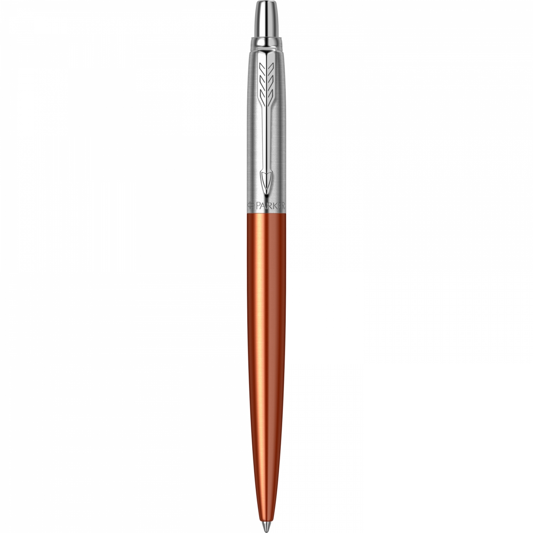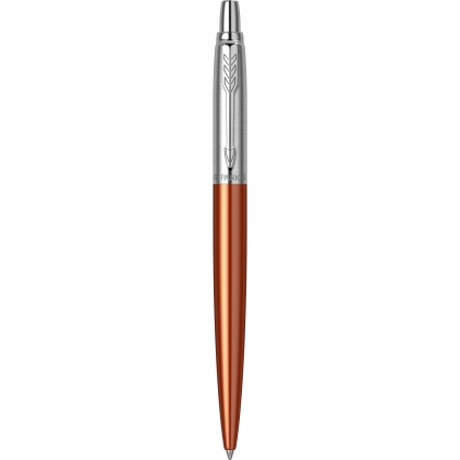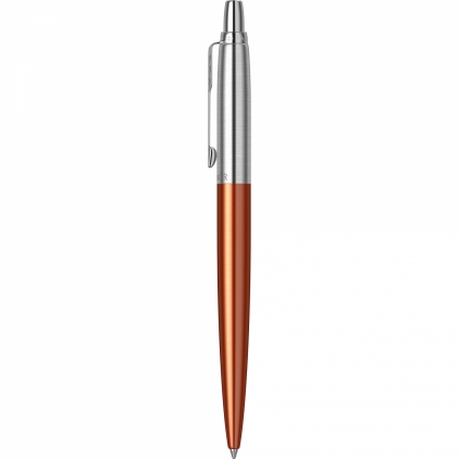 Accesorii: Accesorii din otel inoxidabil placate cu crom. Clip din otel inoxidabil placat cu crom Corp: Corp superior din otel inoxidabil sablat, cizelat cu model brushed, placat cu crom Corp: Corp inferior din otel inoxidabil polisat, cizelat cu model brushed, lacuit cu multiple straturi de lac portocaliu lucios Mecanism: Mecanism click (prin apasare) Mina: Mina pix Parker (vezi consumabile)