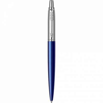 Accesorii: Accesorii din otel inoxidabil placate cu crom. Clip din otel inoxidabil placat cu crom Corp: Corp superior din otel inoxidabil sablat, cizelat cu model brushed, placat cu crom Corp: Corp inferior din otel inoxidabil polisat, lacuit cu multiple straturi de lac albastru lucios Mecanism: Mecanism click (prin apasare) Mina: Mina pix Parker (vezi consumabile)