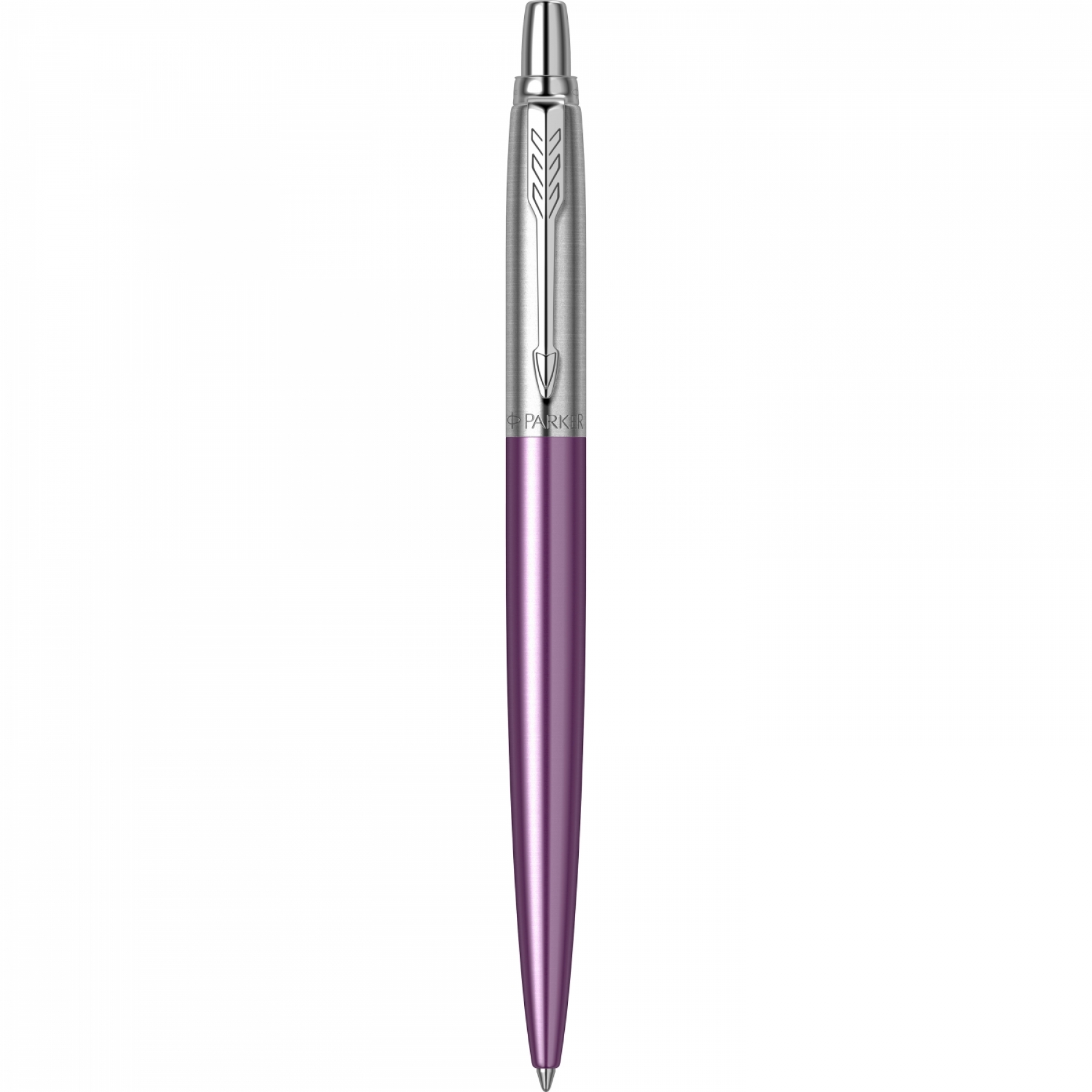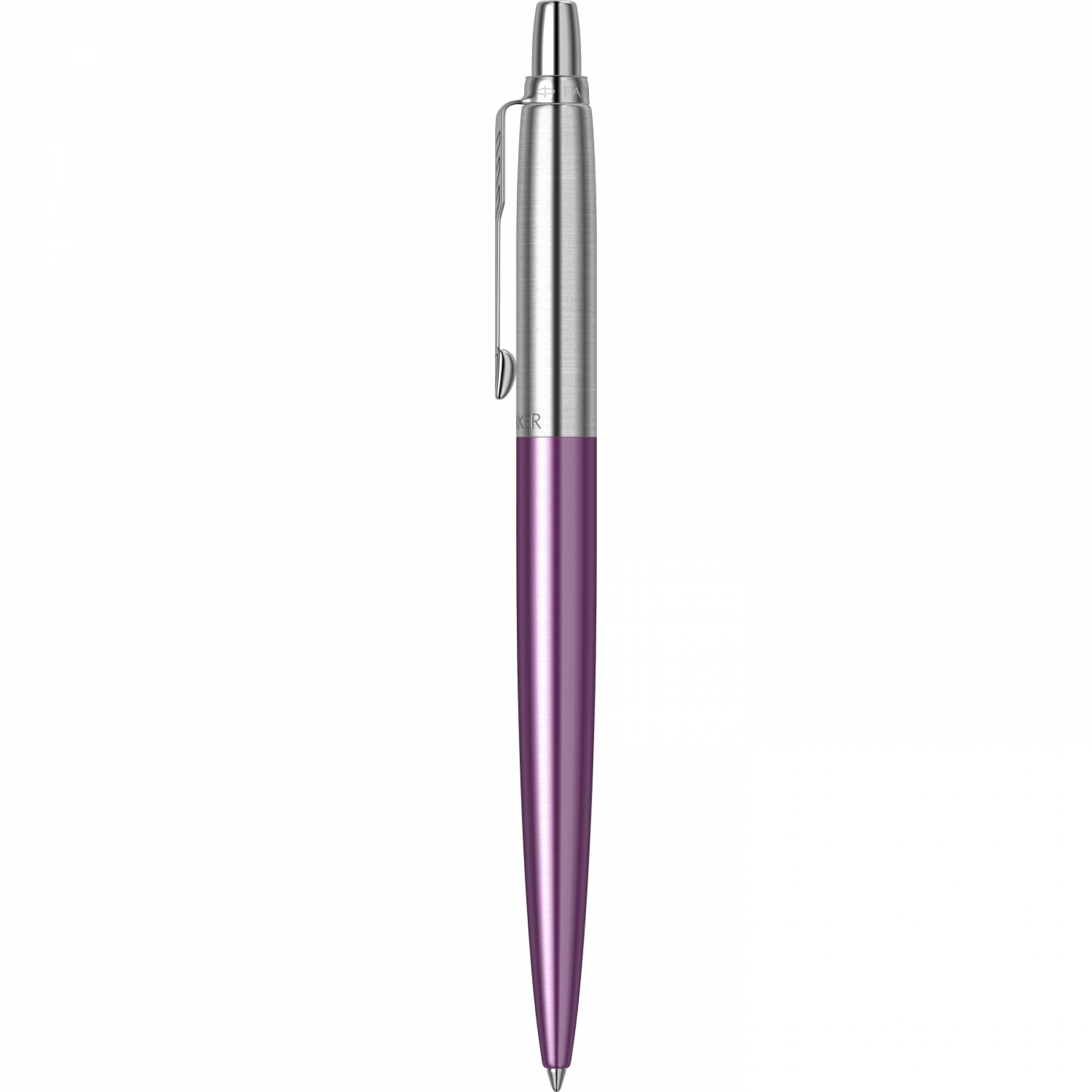 Accesorii: Accesorii din otel inoxidabil placate cu crom. Clip din otel inoxidabil placat cu crom Corp: Corp superior din otel inoxidabil sablat, cizelat cu model brushed, placat cu crom Corp: Corp inferior din otel inoxidabil polisat, cizelat cu model brushed, lacuit cu multiple straturi de lac violet lucios Mecanism: Mecanism click (prin apasare) Mina: Mina pix Parker (vezi consumabile)