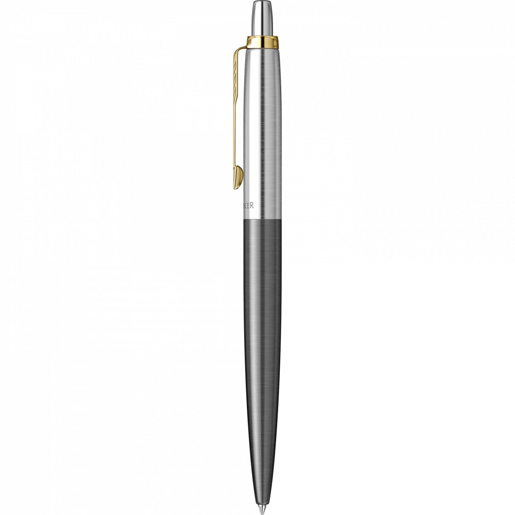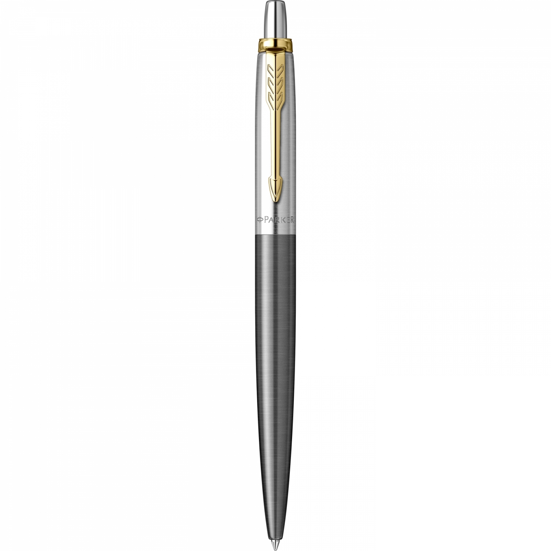Accesorii: Accesorii din otel inoxidabil placate cu aur 23k. Clip din otel inoxidabil placat cu aur 23k. Corp: Corp superior din otel inoxidabil sablat, cizelat cu model brushed, placat cu crom Corp: Corp inferior din otel inoxidabil polisat, lacuit cu multiple straturi de lac gri . Mecanism: Mecanism click (prin apasare) Mina: Mina pix Parker (vezi consumabile)