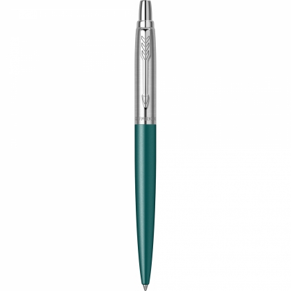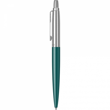 Accesorii: Accesorii din otel inoxidabil placate cu crom. Clip din otel inoxidabil placat cu crom Corp: Corp superior din otel inoxidabil sablat, cizelat cu model brushed, placat cu crom Corp: Corp inferior din otel inoxidabil polisat, lacuit cu multiple straturi de lac verde mat Mecanism: Mecanism click (prin apasare) Mina: Mina pix Parker (vezi consumabile)
