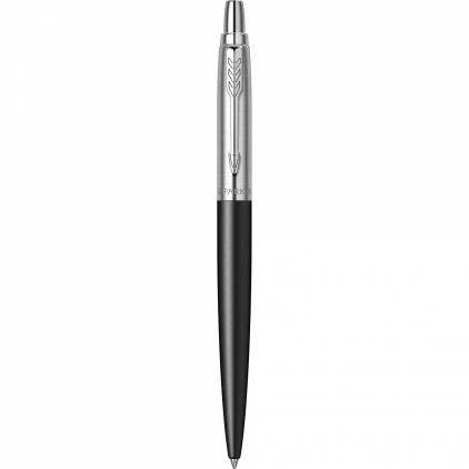 Accesorii: Accesorii din otel inoxidabil placate cu crom. Clip din otel inoxidabil placat cu crom Corp: Corp superior din otel inoxidabil sablat, cizelat cu model brushed, placat cu crom Corp: Corp inferior din otel inoxidabil polisat, lacuit cu multiple straturi de lac negru mat Mecanism: Mecanism click (prin apasare) Mina: Mina pix Parker (vezi consumabile)