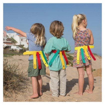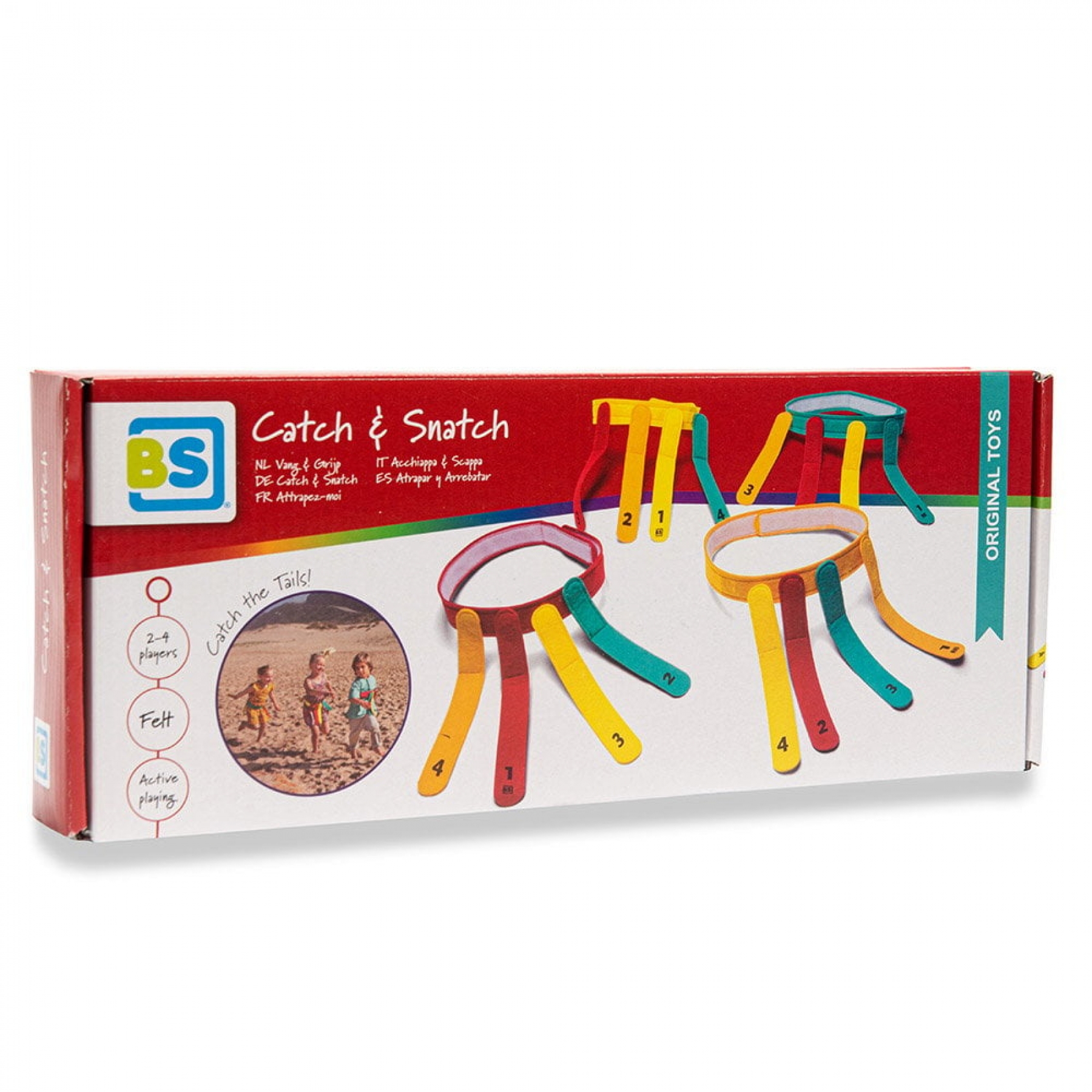 Sa inceapa distractia! Esti suficient de rapid pentru a fi castigator? Poti prinde cat mai multe codite de la prietenii tai? Smulge-le si lipeste-le de cureaua ta. Ai grija insa, toata lumea urmareste cozile tale colorate! Cu acesta reinterpretare amuzanta a jocului clasic , žde-a prinselea, distractia este garantata! Scopul jocului este acela de a smulge cat mai multe cozi de la ceilalti jucatori si de a acumula cat mai multe puncte. Fiecare jucator primeste o centura pe care o va prinde in jurul taliei. Cozile se pun cu fata in jos si se amesteca. Fiecare jucator ia aleatoriu cate una din fiecare culoare si le lipeste pe centura. Odata ce sunt gata, vanatoarea poate incepe! Acum fiecare jucator trebuie sa prinda si sa smulga cozile adversarilor, dar sa evite ca ale lui sa fie prinse. Cand reusesti sa smulgi una, lipeste-o pe propria centura, langa celelalte. Cand un jucator nu mai are cozi, atunci prima runda se termina si toti jucatorii isi numara punctele. Jucati inca 2 runde pentru a vedea cine este castigatorul. Punctaj: Aduna toate numerele de pe cozi. Adauga 1 punct pentru fiecare doua benzi de aceeasi culoare. Adauga 2 puncte in plus daca ai patru de aceeasi culoare. Cine poate strange cele mai multe cozi si aduna cele mai multe puncte, castiga jocul! Setul contine: 4 centuri din fetru in 4 culori diferite si 16 codite colorate (cate 4 din fiecare culoare). Cozile si centurile sunt realizate din fetru de calitate si sunt prevazute cu benzi velcor pentru prindere. , žPrinde si smulge coditele colorate, constituie o activitate super distractiva in aer liber impreuna cu prietenii si familia si este ideal pentru petrecerile de copii. Jocul stimuleaza dezvoltarea muschilor motori-grosieri, a vitezei de reactie si a abilitatilor locomotorii: mers, galop, sarit, topait, alunecare laterala si dragostea pentru un stil de viata activ. Jocul adauga, de asemenea, varietate pentru echipele de copii care se antreneaza pentru sporturi cu mingea, de exemplu, unde sunt necesare abilitati precum viteza, concentrarea si atentia. Dimensiuni centura: 4 x 80 x 0.3 cm; dimensiuni coada: 3 x 23 x 0.3 cm Dimensiuni set: 33 x 13 x 4 cm Varsta recomandata: 3 - 9 ani