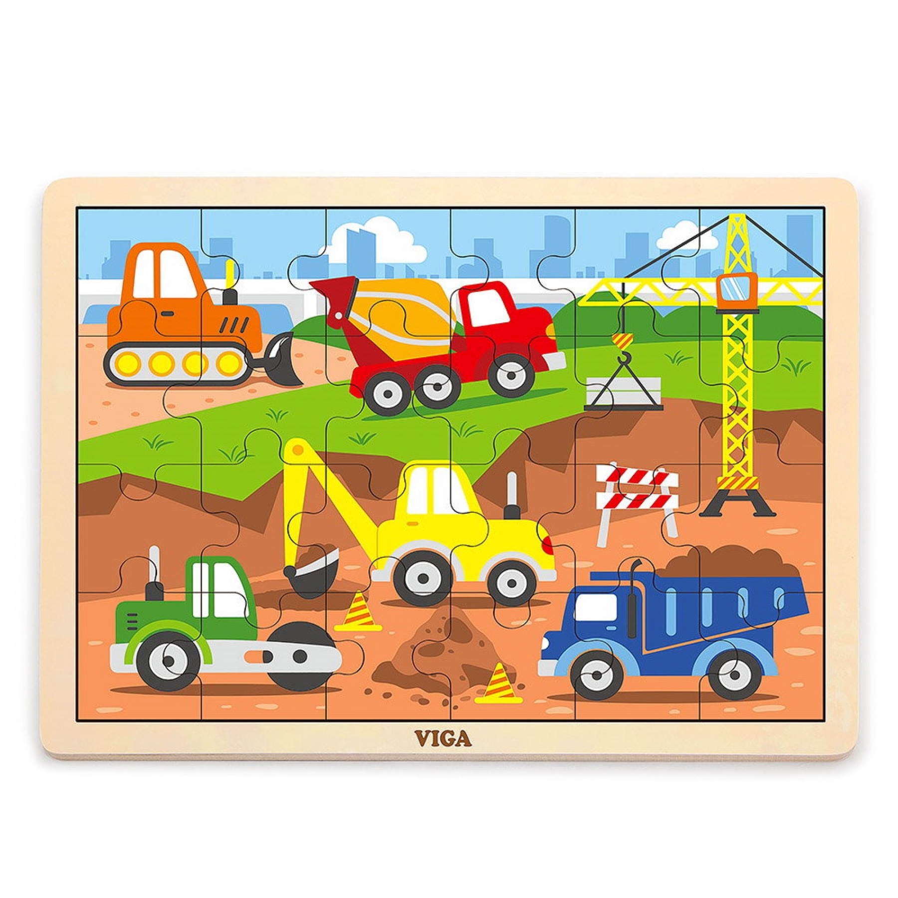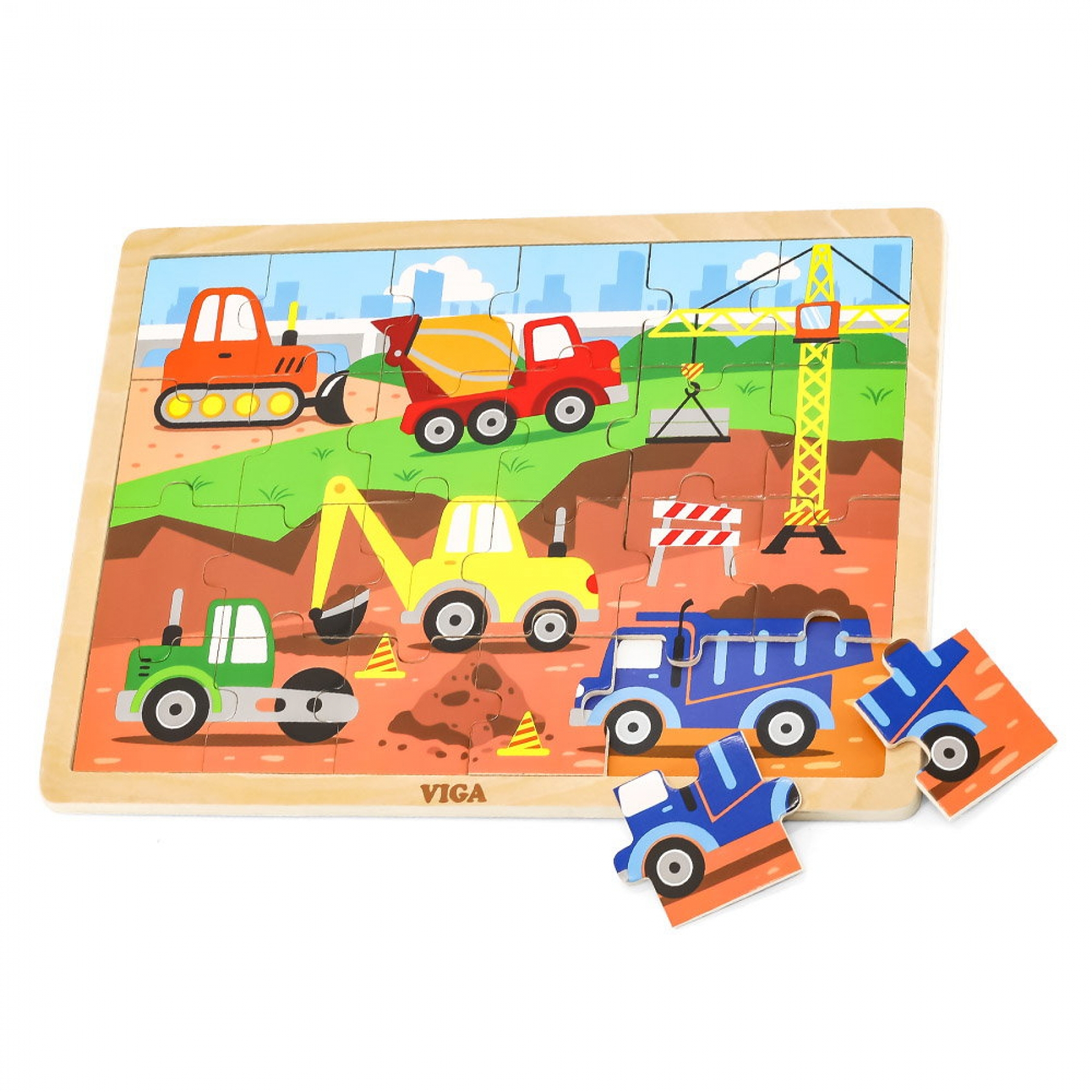 Acest puzzle din lemn de inalta calitate, alcatuit din 24 de piese, este o incantare pentru copiii pasionati de utilajele de constructie prezente pe santiere. Desenele frumos realizate, redand un santier de constructii cu utilaje in actiune si culorile vesele si luminoase, vor capta pe loc atentia micutilor. Acest puzzle frumos si de calitate din lemn vine intr-o tavita din lemn pentru ca piesele sa fie usor de potrivit si pastrat. Sub piesele puzzle-ului se afla desenata aceeasi imagine frumoasa redata si pe piese, astfel incat cei mici vor avea un ajutor in plus in rezolvarea lui. La fel ca celelalte jucarii marca Viga si acest puzzle este fabricat din lemn de inalta calitate, iar vopselurile si cernelurile folosite sunt netoxice, respectand standardele de siguranta a jucariilor EN71 si ASTM. Asamblarea puzzle-ului contribuie la dezvoltarea recunoasterii culorilor si a formelor, precum si la dezvoltarea aptitudinilor de potrivire. Jocurile de puzzle imbunatatesc rabdarea,atentia, concentrarea, motricitatea fina, coordonarea ochi-mana, gandirea logica, memoria si abilitatile de rezolvare a problemelor. In plus, micutii vor invata si recunoaste diferite vehicule si caile de deplasare a acestora. Dimensiune puzzle: 30 x 22 x 1 cm Varsta recomandata: 2 , 5 ani.