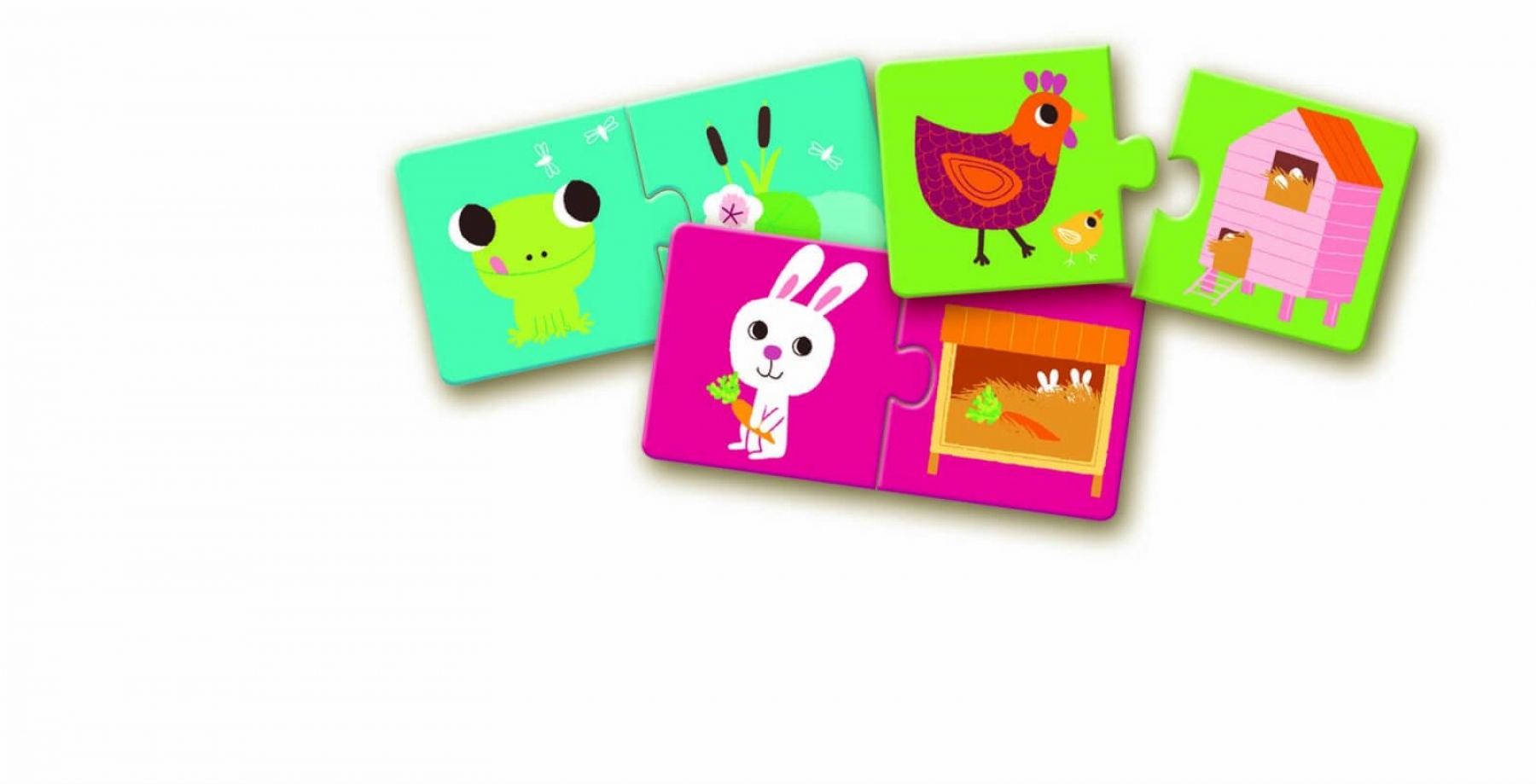 Puzzle doua piese de asociere Habitatul animalelor Copiii potrivesc fiecare animal cu casa lui. Un simplu joc de potrivire , žcine unde locuieste?, Puzzle cu auto-corectie: fiecare piesa de puzzle se va potrivi doar cu perechea sa. Cutia colorata cu snur atasat o face usor de transportat. Continut: 10 puzzle-uri din 2 piese. Varsta recomandata: + 2 ani. Producator: Djeco, Franta Confectionat din carton, cu vopsele non-toxice, conform reglementarilor EN71ASTM.
