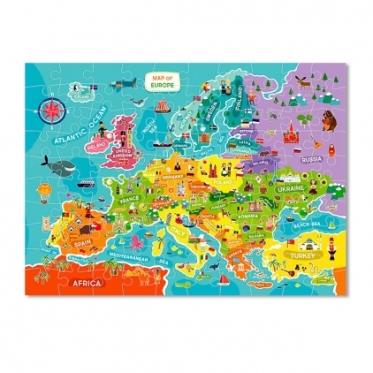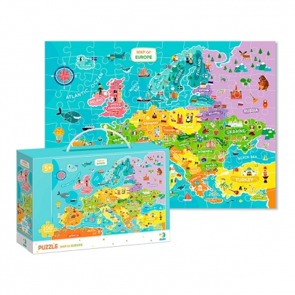 Cat de bine cunosti tarile Europei? Cate steaguri recunosti? Stii care sunt monumentele arhitecturale reprezentative ale fiecarei tari? Dar atractiile pentru care sunt recunoscute acestea? Descopera harta Europei, piesa cu piesa, impreuna cu tarile continentului si o multime de alte simboluri faimoase ale acestora! Exista atatea lucruri interesante despre Europa care te asteapta sa le dezvalui si sa le inveti! Asambland corect cele 100 de piese ale acestui puzzle, vei explora nu numai tarile europene, ci si steagurile, monumente arhitecturale, costumele nationale, atractiile turistice si alte simboluri reprezentative pentru acestea. Puzzle-ul Harta Europei - Dodo este un puzzle educational captivant si un cadou perfect pentru copiii cu varsta de 5 ani si peste. Setul contine 100 de piese confectionate din carton rezistent, de calitate, in culori vibrante, care vor dezvalui o imagine bogat detaliata si colorata a continentului european. Acest puzzle contribuie la dezvoltarea: indemanarii, imaginatiei, gandirii logice, perceptiei vizuale, atentiei, observatiei, concentrarii, motricitatii fine, coordonarii ochi-mana si a dexteritatii. In plus, cu ajutorul acestuia, copiii invata despre Europa si tarile batranului continent. Dodo Toys ofera o colectie minunata de puzzle-uri si jocuri pentru copiii de la 18 luni in sus. Cu modele frumoase si distractive, aceste puzzle-uri cuprind de la puzzle-uri simple de 2 piese pentru cei mici, pana la puzzle-uri mai provocatoare de 1000 de piese, pentru copiii mai mari. Gama de jocuri si puzzle-uri vibrante si colorate Dodo ofera beneficii educationale si de dezvoltare, fiind cadourile perfecte pentru a ajuta copiii sa invete in timp ce se distreaza. Dimensiunea puzzle-ului: aprox. 64 x 46 cm Varsta recomandata: 5-10 ani Atentie! Contraindicat copiilor mai mici de 3 ani.Jucaria produsul poate contine piese mici care se pot inghiti sau inhala existand pericolul de accidente sau nu este potrivita copiilor mai mici de 3 ani.