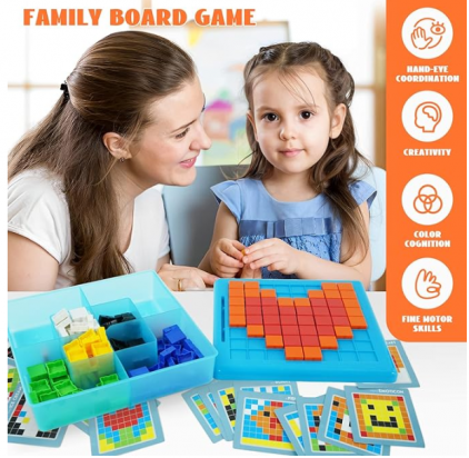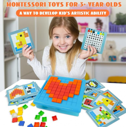 Puzzle Logic si Joc Mozaic pentru Copii, 175 piese, 20 sabloane, STEM. Stimuleaza logica, creativitatea si concentrarea copilului tau cu un puzzle educational interactiv! Acest joc mozaic este perfect pentru micii exploratori curiosi, oferind o experienta STEM captivanta si plina de culoare. Beneficii produs: Dezvolta gandirea logica si spatiala prin sabloane cu simboluri geometrice 175 de piese colorate in 7 nuante vii , ideale pentru recunoasterea culorilor si creativitate 20 de sabloane duble , fata cu model complet si spate cu coduri logice Organizare eficienta , cutie compartimentata pentru depozitare usoara si acces rapid Material durabil si sigur , plastic rezistent, certificat CE Puzzle-ul logic mozaic este o jucarie educativa ideala pentru copiii de peste 3 ani. Setul contine 175 de piese in 7 culori vibrante si o tabla de lucru pe care copiii pot recrea modele inspirate din cele 20 de sabloane incluse. Fiecare sablon are doua variante: una cu imaginea finala si una cu simboluri geometrice care corespund fiecarei culori , provocand copilul sa gandeasca, sa compare si sa potriveasca. Astfel, jocul devine o experienta completa de invatare care imbina distractia cu dezvoltarea cognitiva. Este o activitate excelenta atat individual, cat si in familie sau la gradinita, incurajand rabdarea, atentia la detalii si motricitatea fina. Specificatii tehnice: Varsta recomandata: 3 ani+ Material: plastic rezistent Numar piese: 175 Dimensiuni cutie compartimentata: 24.5 x 24.5 x 5.5 cm Dimensiuni ambalaj: 25 x 25 x 6.5 cm Setul contine: 1x tabla de joc 175x piese colorate (7 culori) 20x sabloane educative fata-verso Recomandari de utilizare: Ideal pentru dezvoltarea abilitatilor STEM Se poate folosi acasa, in calatorii sau in mediul educational Curatare usoara cu o laveta umeda