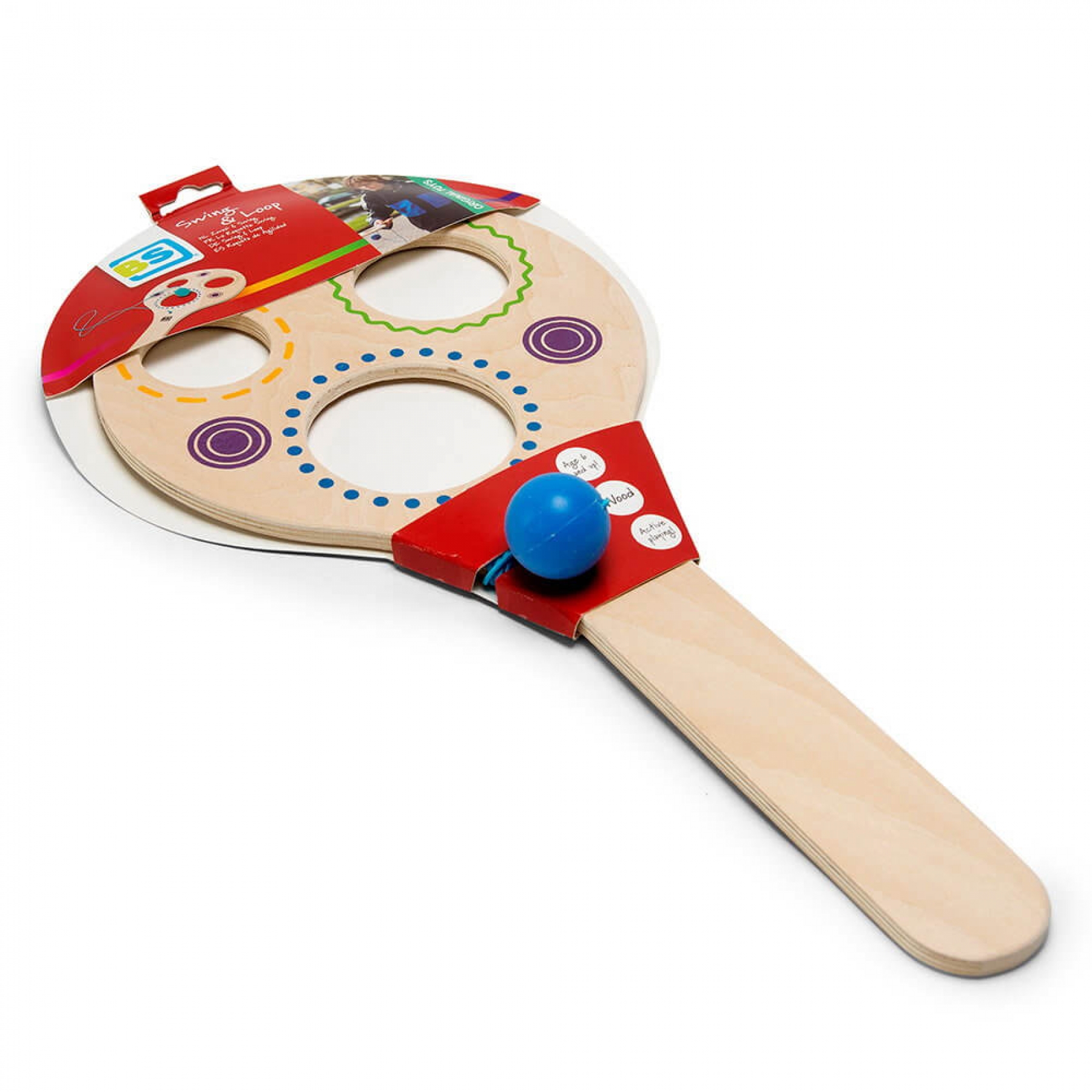 Balanseaza mingea pentru a o introduce intr-una dintre cele trei gauri, sau las-o sa sara intre ele, pe tintele mov! Vei avea nevoie de indemanare, agilitate si coordonare pentru acest joc distractiv si captivant! Racheta este fabricata din lemn si este potrivita ca joc individual pentru copiii cu varsta de la 6 ani in sus. Jocul imbunatateste coordonarea, capacitatea de concentrare, indemanarea, coordonarea ochi-mana, si ajuta la dezvoltarea reflexelor foarte bune. In plus, poate fi un exercitiu de gimnastica util copiilor. Dimensiune racheta: 45 x 21 cm Varsta recomandata: 6 ani+