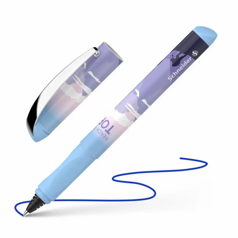 Stilou roller Schneider cu corp din plastic cu design sportiv. Varf conic din otel inoxidabil foarte rezistent, grosime de scriere M.