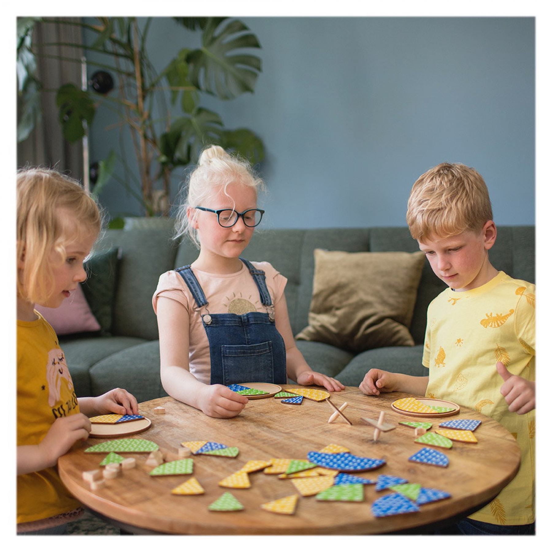 Distreaza-te impreuna cu prietenii cu jocul Roteste si potriveste de la BS Toys si colecteaza 3 jetoane completand puzzle-ul rotund de 3 ori pentru a castiga jocul! Fiecare jucator primeste o tabla de joc rotunda si trei piese de joc colorate. Trebuie sa alegeti 1 piesa mare si oricare alte 2 piese. Pune toate celelalte piese cu fata in sus in mijlocul mesei. Alegeti cine incepe jocul. Primul jucator va invarti ambii titirezi. Cand titirezii se opresc, utilizeaza forma si culoarea din partea de sus a acestora. Ai o piesa cu aceasta forma sau culoare? Daca da, aseaz-o pe tabla ta de joc si incerca sa completezi cercul. Daca poti plasa o piesa, asigura-te ca vei lua o alta bucata, la alegere, dintre cele din mijlocul mesei. Trebuie sa ai intotdeauna 3 piese in fata ta, fara a le include pe cele de pe tabla de joc. Ai voie sa schimbi o piesa dintre cele plasate deja pe tabla de joc, cu una dintre cele trei din fata ta. Poti face acest lucru o data per puzzle in orice moment al jocului. Cand ai terminat de completat puzzle-ul, poti lua un jeton. Pune toate piesele colorate inapoi in mijloc si ia 3 piese noi(1 mare + oricare alte 2). Primul jucator care aduna cele 3 jetoane castiga jocul.. Jocul include: 40 de piese colorate, 4 table de joc rotunde, 12 jetoane, 2 titirezi. Jocul este realizat din placaj de lemn. Roteste si potriveste dezvolta atentia, concentrarea, abilitatile motorii fine si cele de potrivire. Diametru placa de joc: 13 cm Dimensiune titirez: 6.5 x 5 cm Dimensiune joc: 31 x 17 x 6 cm Varsta recomandata: 6 ani+ [embed]https: youtu.be SrmSEx4TJzA[ embed]