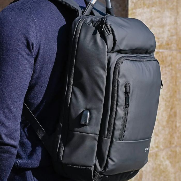 Companionul pe care il cautai! Acest rucsac laptop te va ajuta sa iti extinzi bateria sau sa iti reincarci dispozitivele datorita portului sau USB integrat.