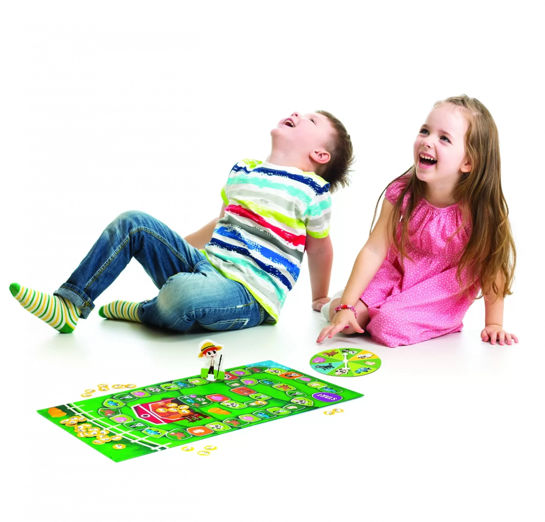 Cine a spus ca toate jocurile vor fi competitive? Salvati oitele este un joc de colaborare, in care toti jucatorii lucreaza impreuna pentru a salva oitele si a le aduce pe toate in siguranta acasa. Rotiti roata si gasiti pe tabla aceeasi imagine ca imaginea indicata de sageata. Numarati pozitiile pe care le-ati avansat pe tabla - acesta este numarul de oi pe care le-ati salvat si pe care le puteti muta in siguranta in casa lor. Dar atentie, daca ciobanasul ajunge acasa si mai sunt oite de salvat, jocul s-a terminat si trebuie sa o iei de la capat! Castigi doar daca toate oitele sunt in casa lor cand ajunge si ciobanasul acasa. Colaborati, lucrati impreuna cu ceilalti si asigurati-va ca salvati toate oitele! Valorile educationale ale jocului: invatarea numerelor si numaratorii, empatie, colaborare, spirit de echipa. Contine: - 1 roata si sageata, - 1 ciobanas cu baza de plastic, - 1 tabla de joc, - 40 de jetoane mici. Varsta recomandata: 3 ani+