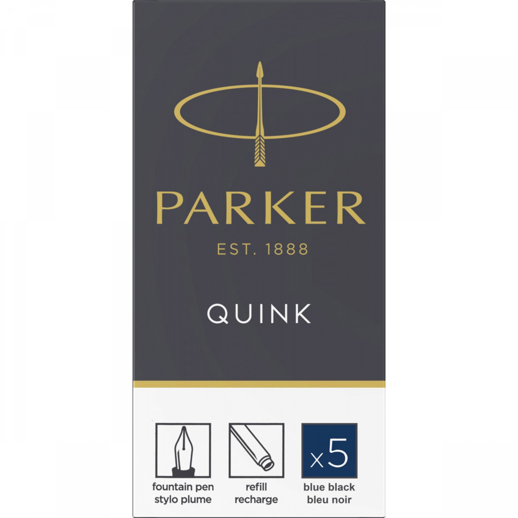 : Corp cartus din HDPE (Polietilena de inalta densitate). Doua compartimente de cerneala Membrana: Membrana din polipropilena de separare intre compartimentul principal si compartimentul secundar. Cerneala: Cerneala permanenta de culoare albastru inchis (nu se sterge cu pic) cu uscare rapida pe baza de pigment Ambalaj: Ambalaj cutie carton set 5 cartuse Cap: Cap insertie stilou din HDPE (Polietilena de inalta densitate). Membrana cap insertie din polipropilena