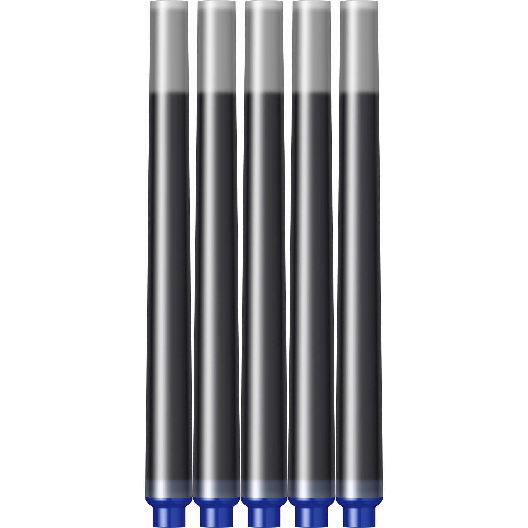 Corp: Corp cartus din HDPE (Polietilena de inalta densitate). Doua compartimente de cerneala Membrana: Membrana din polipropilena de separare intre compartimentul principal si compartimentul secundar. Cerneala: Cerneala permanenta de culoare albastra (nu se sterge cu pic) cu uscare rapida pe baza de pigment Ambalaj: Ambalaj cutie carton set 5 cartuse Cap: Cap insertie stilou din HDPE (Polietilena de inalta densitate). Membrana cap insertie din polipropilena