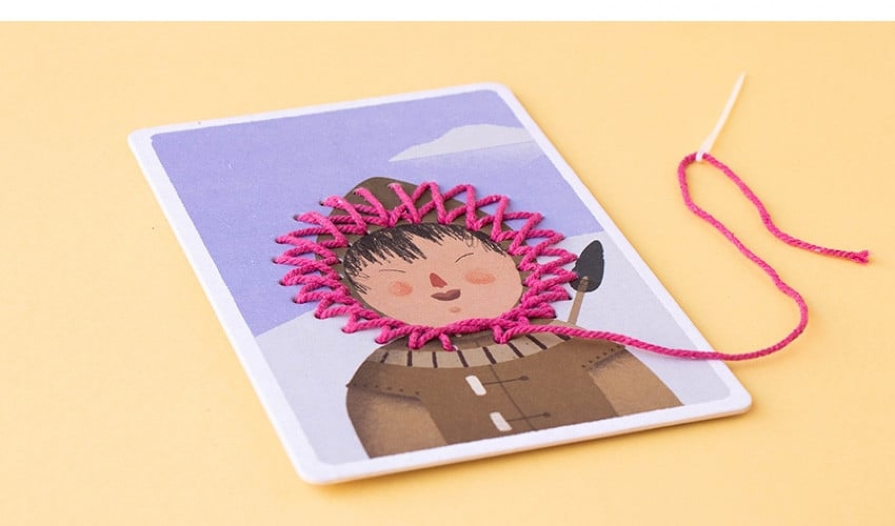Set de cusut, Zig zag Cu ajutorul unui ac, completezi plansele ilustrate si pornesti in aventura potrivita pentru cei mai indemanatici. Care este preferatul tau, eschimosul, marinarul sau veverita zambitoare? Setul contine 8 planse cartonate ilustrate si perforate, un ac bont si 5 mosoare cu ata colorata. Varsta recomandata: + 5 ani. Confectionat materiale conform reglementarilor EN71 ASTM. Avertisment: Contraindicat copiilor sub 3 ani. Contine piese mici, ascutite. A se utiliza sub stricta supraveghere a unei persoane adulte. Producator: Londji, Spania.