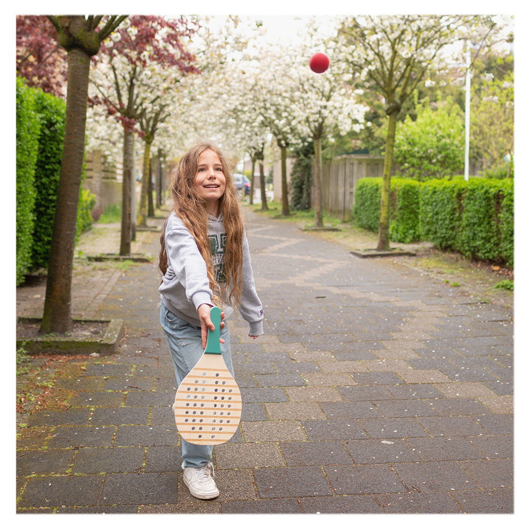 Acest set de padel din lemn, marca BS Toys, va alunga plictiseala si va face si mai distractiv timpul petrecut cu prietenii in aer liber, fie ca te vei juca in curte, la iarba verde, in parc sau pe plaja! Joaca-te cu prietenii si incercati sa impiedicati cat mai mult mingea sa atinga solul! Setul include 2 rachete din lemn, prevazute cu gaurele, o minge usoara din spuma si un saculet de depozitare din plasa. Datorita mingii usoare din spuma poliuretanica se poate juca in siguranta, fara a lovi pe nimeni. Daca mingea loveste accidental o fereastra, nu va provoca daune. Setul de rachete de padel ii va ajuta pe copii in invatarea altor jocuri asemanatoare cu racheta si le va dezvolta, in acelasi timp, motricitatea, precizia, coordonarea ochi-mana, indemanarea. Este fabricat din placaj de lemn 100% FSC si spuma poliuretanica, conform reglementarilor de siguranta a jucariilor EN71ASTM. Dimensiune rachete: 42 x 21 cm Varsta recomandata: 6 ani+