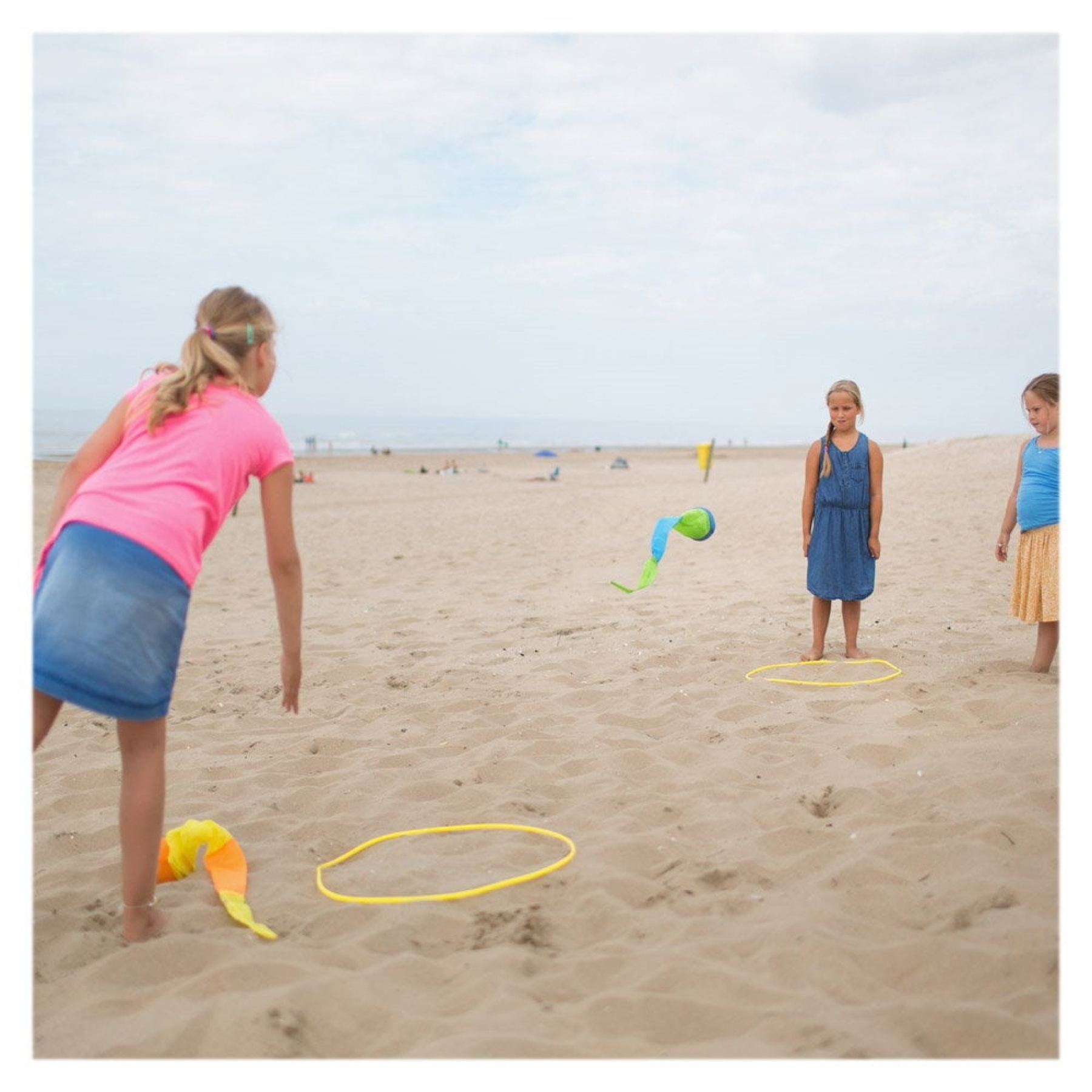Invarteste mingea, arunc-o la tinta si incearca sa nimeresti cercul adversarului! In curte, in parc, la iarba verde, pe plaja sau oriunde in vacanta, distreaza-te alaturi de prieteni sau familie cu acest joc grozav, potrivit pentru mici si mari! Slingball este un joc de indemanare distractiv, in care jucatorii vor incerca sa arunce mingile din burete cu cozi in cercurile adversarilor, obtinand cat mai multe puncte. Este un joc grozav pentru mici si mari, ideal de jucat oriunde in aer liber: in curte, in parc, la iarba verde, pe plaja sau oriunde in vacanta! Apuca varful cozii sau cat mai aproape de minge! Rasuceste mingea si incearca sa o arunci astfel incat sa aterizeze in cercul adversarului! Obtine mai multe puncte decat adversarul tau si castiga jocul! Include: 4 mingi cu coada din poliester, 2 inele din plastic Jocul este fabricat din poliester si plastic. Dimensiune ambalaj: 27 x 12 x 22 cm. Varsta recomandata: 6 ani + Descopera aici intreaga gama de articole jucarii motrice si de exterior .