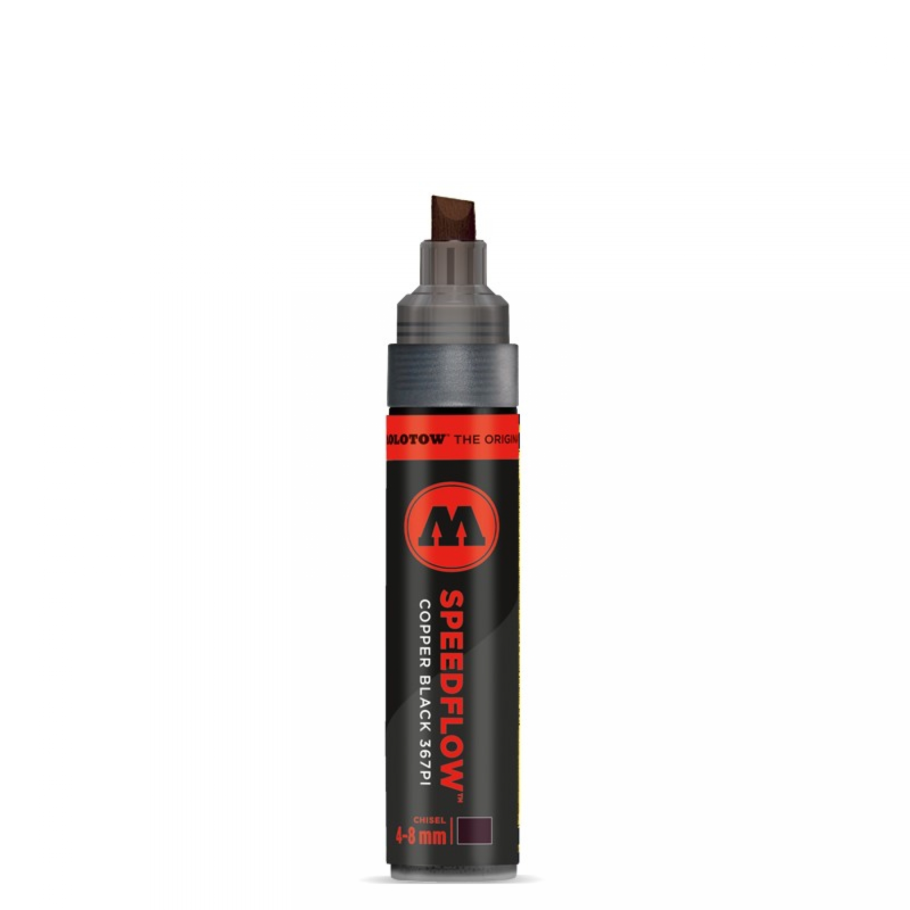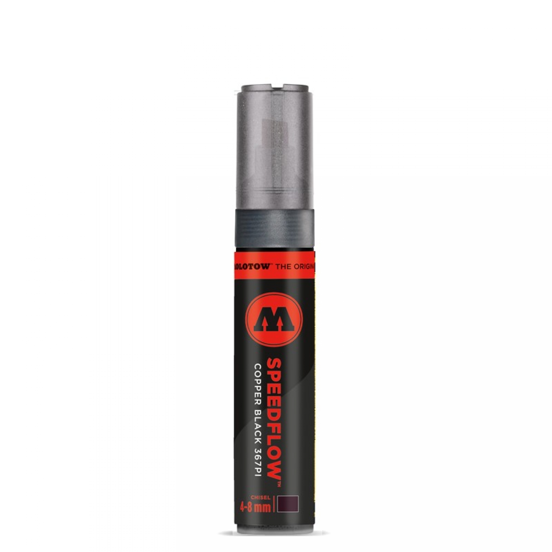 Marker ideal pentru arhitectura clasică a literelor: graffiti. În combinație cu tușul SPEEDFLOW copper black devine de neînvins, cu o aplicare lucioasă și permanentă.- pe bază de alcool