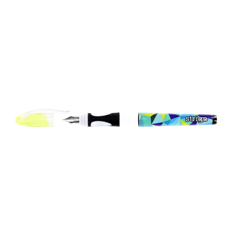 Stilou cerneala stergere prin frictiune Strigo Geometric cu 2 rezerve si curatitor penita