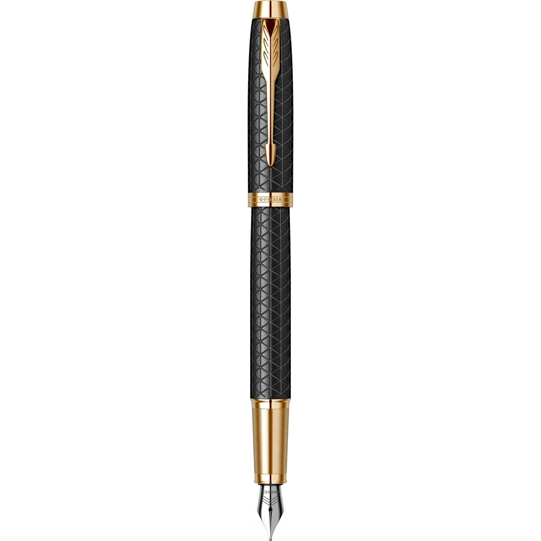 Accesorii: Accesorii din alama placate cu aur de 23K. Clip din otel inoxidabil placat cu aur de 23K Capac: Capac din aluminiu polisat gravat laser cu model triunghiular, lacuit cu multiple straturi de lac mat negru. Capacul se inchide prin apasare Corp: Corp din aluminiu polisat gravat laser cu model triunghiular, lacuit cu multiple straturi de lac mat negru Grip: Grip din alama cizelat cu model brushed, placat cu aur de 23K Penita: Penita din otel inoxidabil polisat placata cu crom, avand in varf pastila de iridiu. Stiloul functioneaza atat cu cartuse, cat si cu convertor.