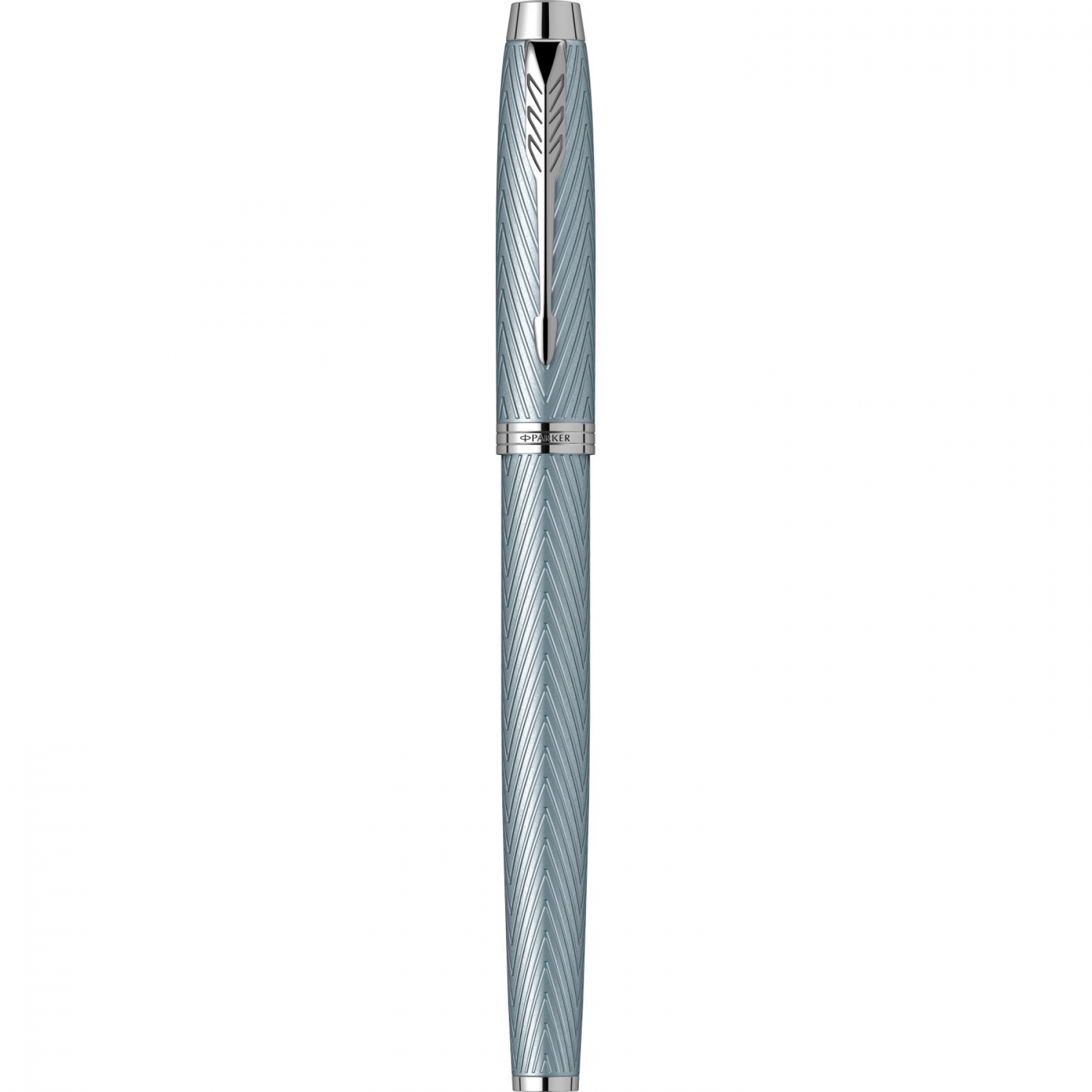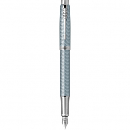 Accesorii: Accesorii din alama placate cu placat cu crom. Clip din otel inoxidabil placat cu crom. Capac: Capac din aluminiu cizelat cu model chevron large, lacuit cu multiple straturi de lac albastru perlat. Capacul se inchide prin apasare Corp: Corp din aluminu cizelat cu model chevron large, lacuit cu multiple straturi de lac albastru perlat. Grip: Grip din alama cizelat cu model brushed, placat cu crom. Varf: Penita din otel inoxidabil polisat placata cu crom, avand in varf pastila de iridiu. Stiloul functioneaza atat cu cartuse, cat si cu convertor.
